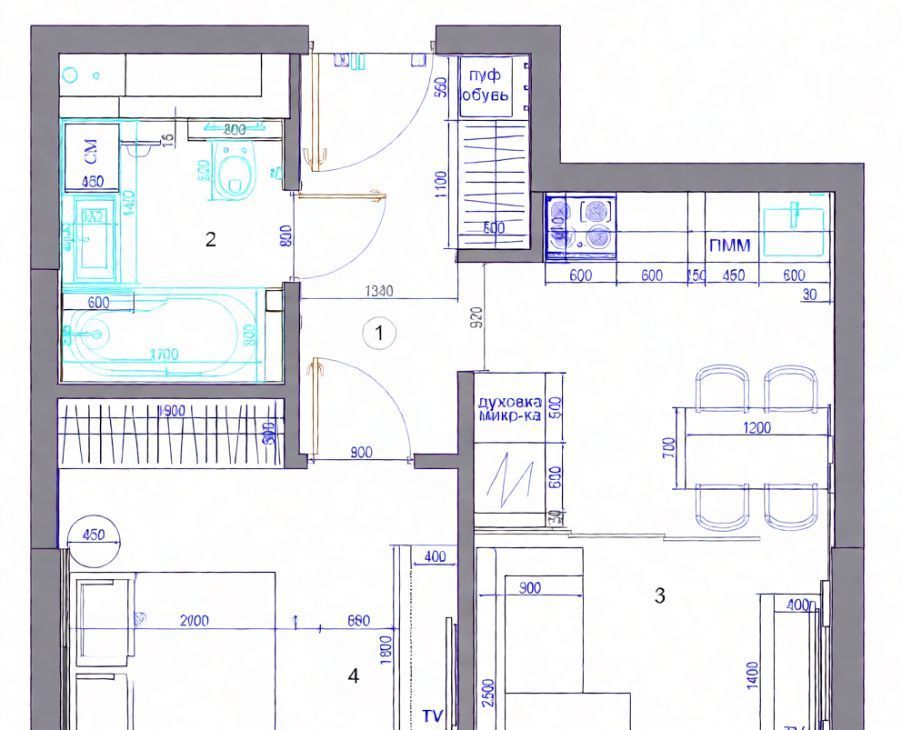 • Жилая 12 м² + просторная кухня-гостиная.