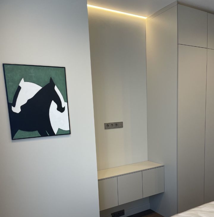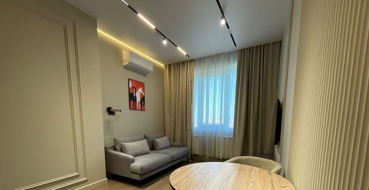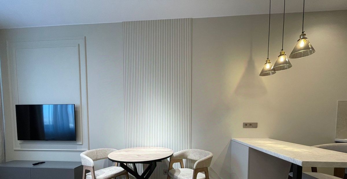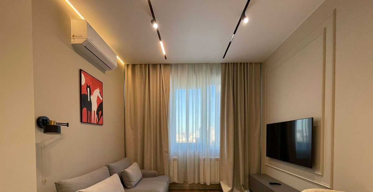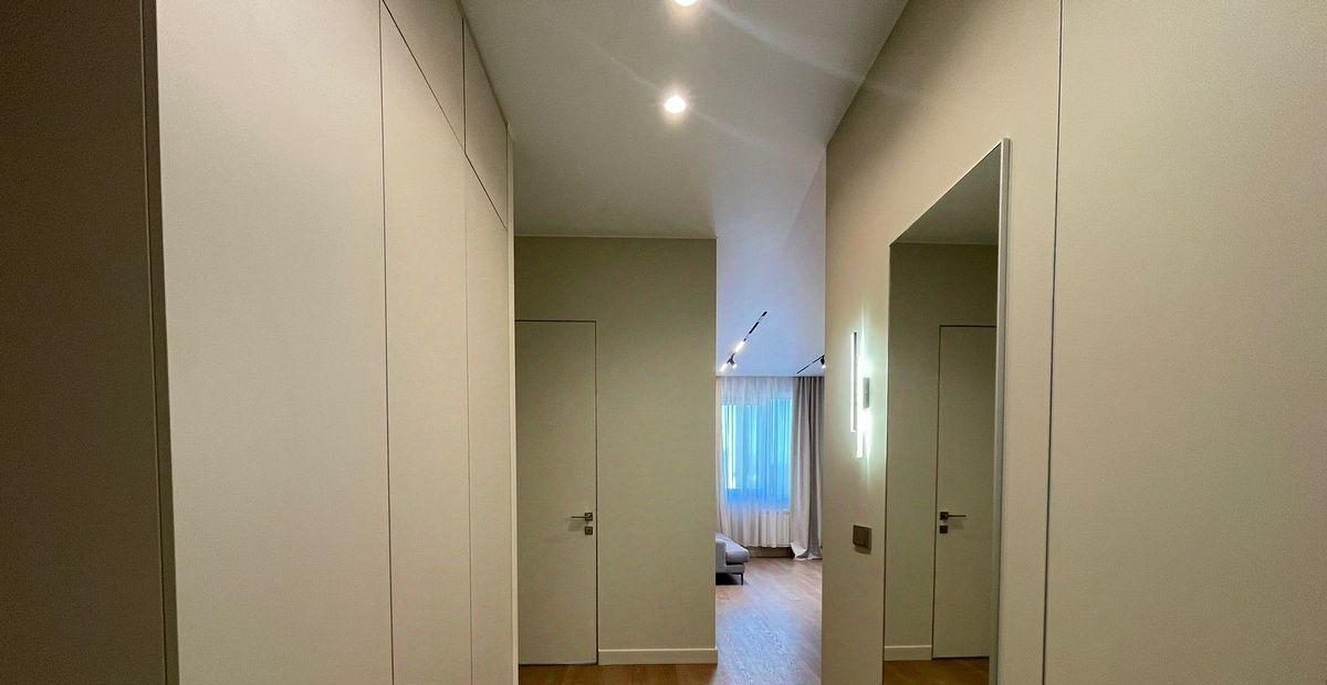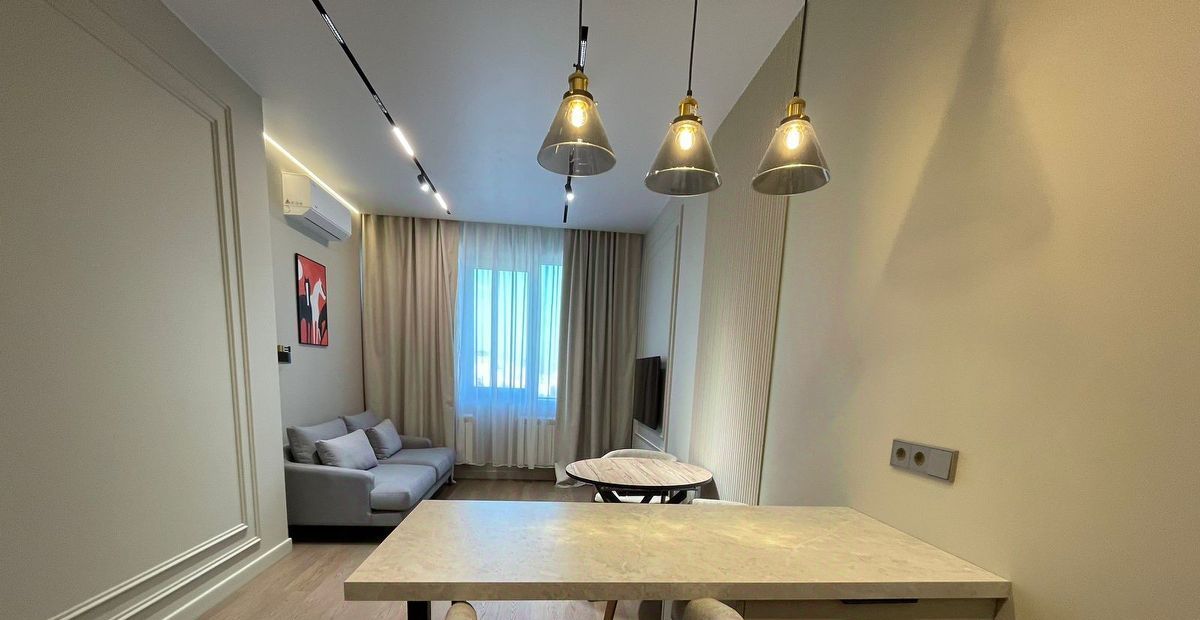 В квартире выполнен дизайнерский ремонт, вся необходимая мебель в кухне-гостиной и спальне. Вся техника в наличии: встроенный холодильник, кондиционер в каждой комнате, посудомоечная и стиральные машины.
