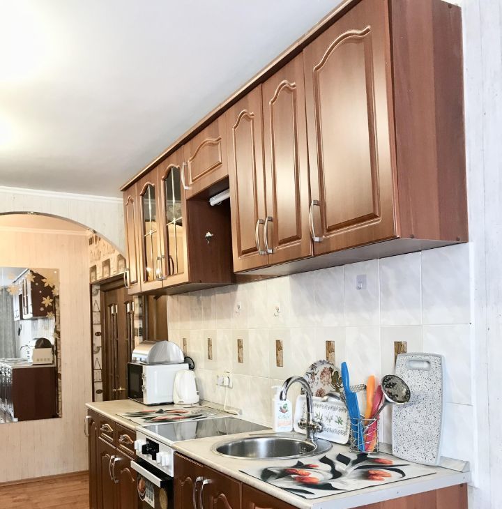 Уютная, светлая, ухоженная! Сдается впервые! Одна комната закрыта с вещами собственника . Поэтому сдается только 1 изолирована комната и компактная кухня-гостиная . На кухне расположена обеденная зона , есть большой диван, телевизор, холодильник. Использовано удачное дизайнерское решение-встроенная кухонная мебель и зона готовки вынесены отдельно на подиум в зону прихожей ( перепланировка ).