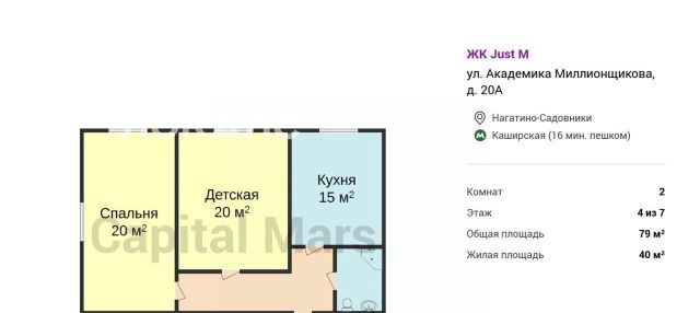 2-к кв. Москва ул. Академика Миллионщикова, 20А (79.0 м²)