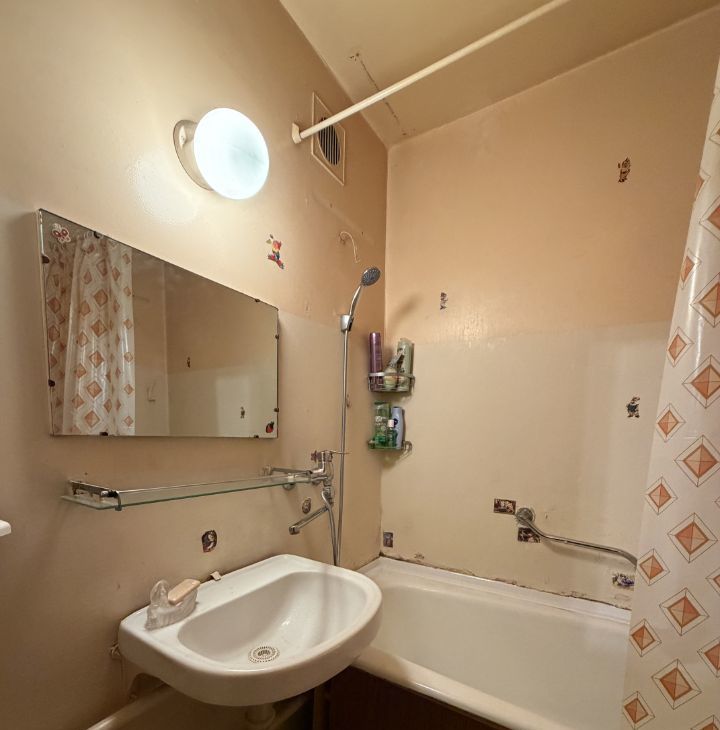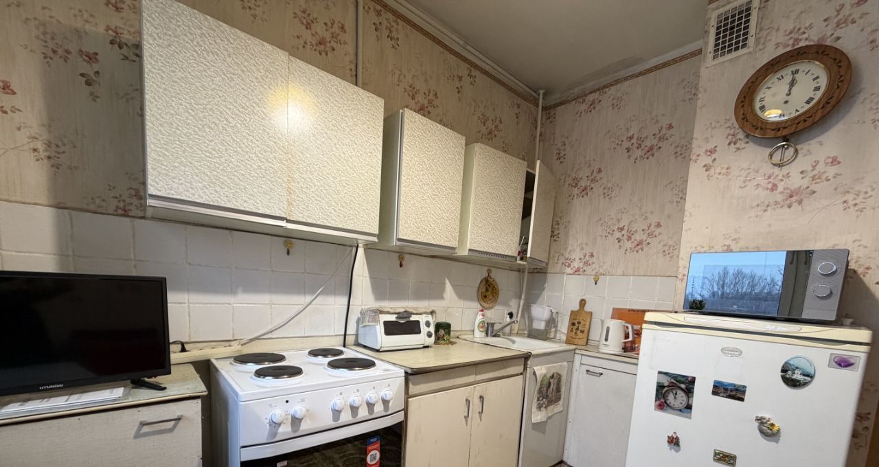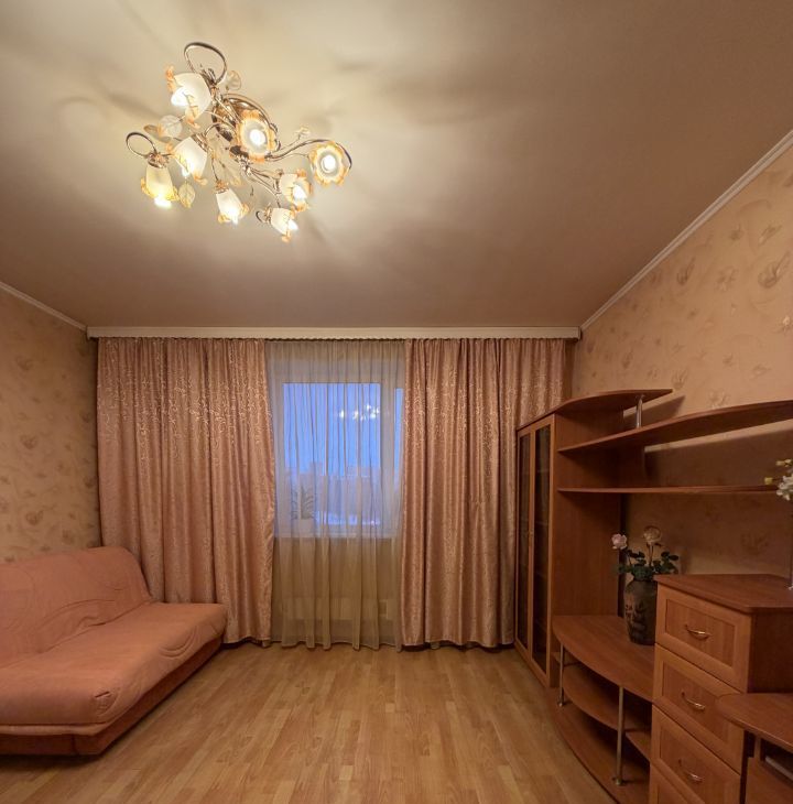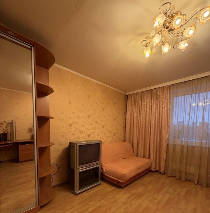 В квартире сделан косметический ремонт. Все необходимое для жизни уже есть: кухня оборудована мебелью и техникой, в том числе холодильником. В комнате также имеется мебель. В ванной комнате установлена ванна, есть стиральная машина. В гостиной ждет телевизор для вашего удобства. Лоджия, выходящая во двор, станет отличным местом для отдыха.