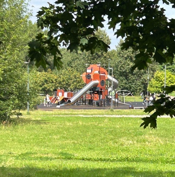 Тихий двор, детские площадки , теннисные корты, футбольное поле. Рядом парк.