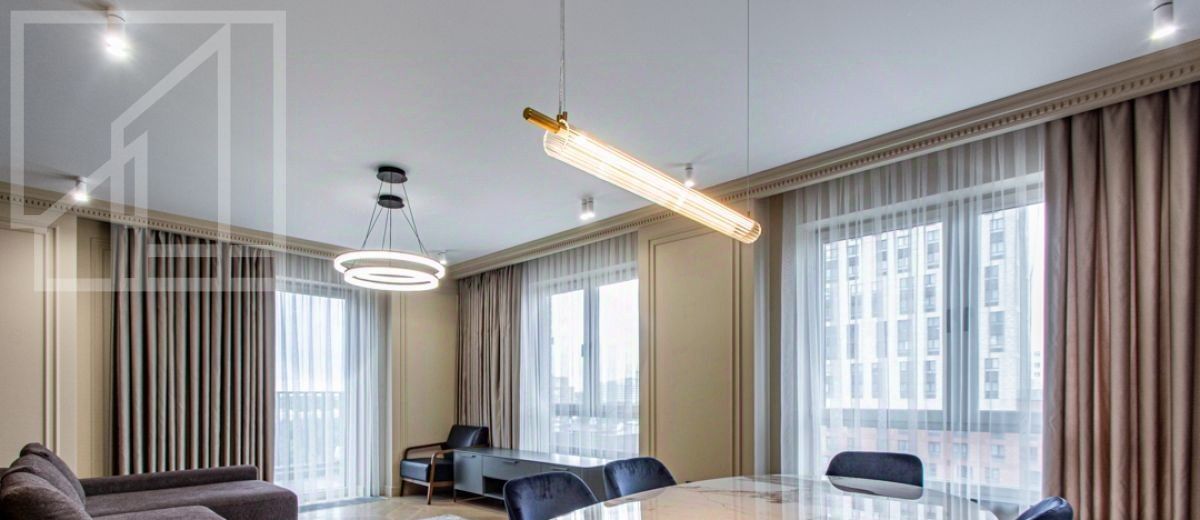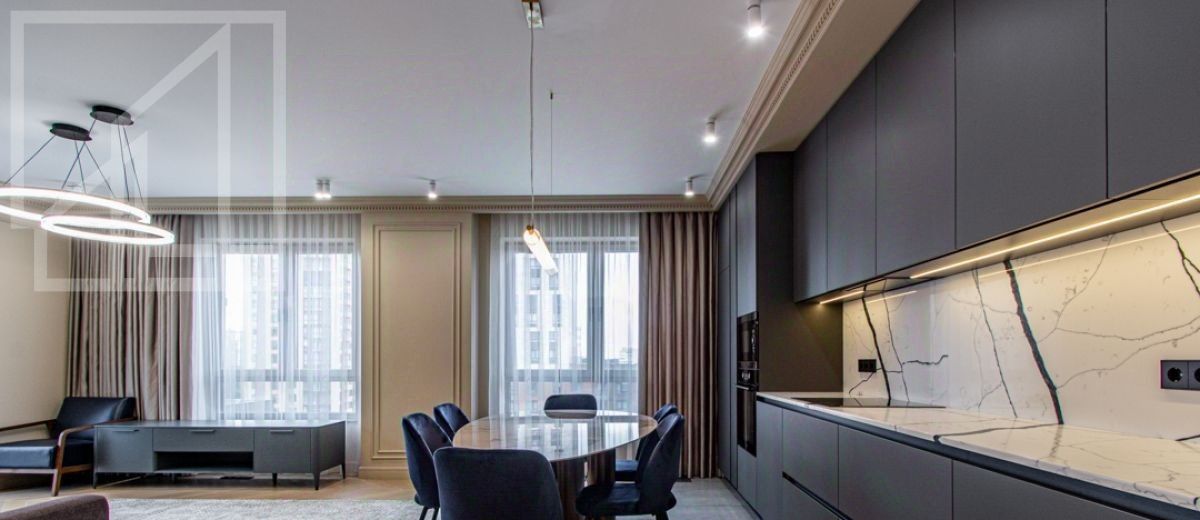 Выполнена дизайнерская отделка, квартира полностью меблирована, оборудована всей необходимой бытовой техникой.