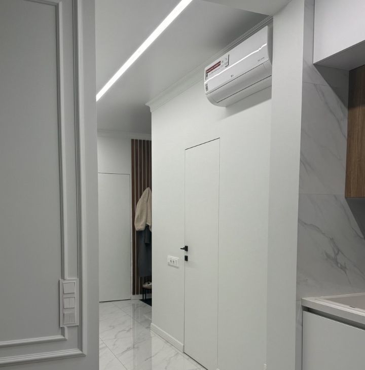 кондиционер, посудомоечная машина, духовка, варочная панель, микроволновка, стиральная и отдельная сушильная машины.