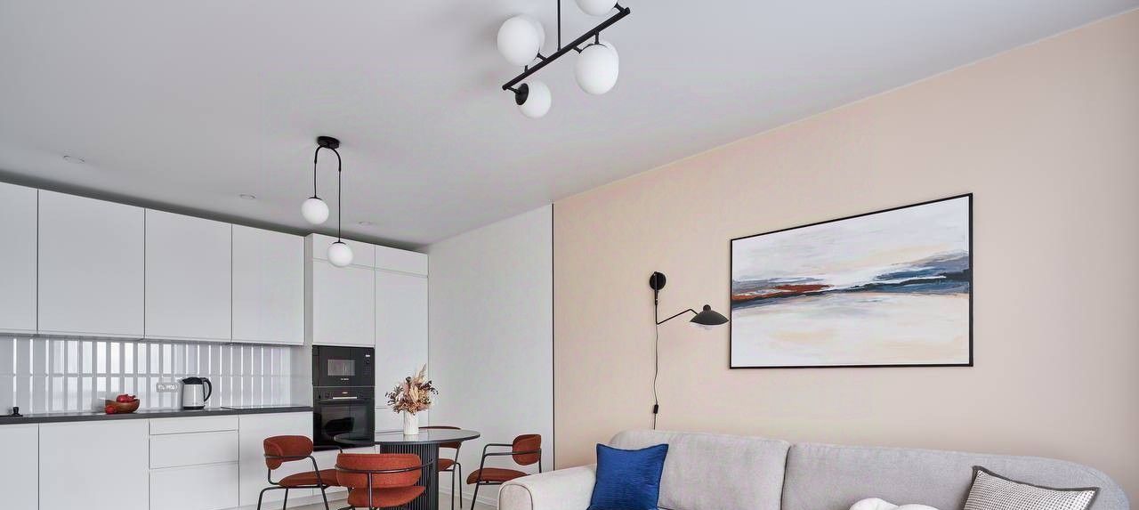 - просторная кухня-гостиная со встроенной техникой Bosch (холодильник, свч, духовой шкаф, варочная панель, посудомоечная машина, вытяжка, фильтр питьевой воды), кондиционер. Здесь вы можете расслабиться и набраться сил после насыщенного дня, устроившись на мягком диване или провести теплый вечер в кругу родных и друзей;