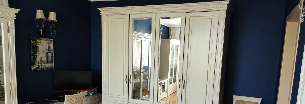 Вся мебель в квартире дорогая и качественная, из массива дуба (поэтому с животными нельзя), много шкафов для хранения вещей, шкаф есть даже на лоджии.