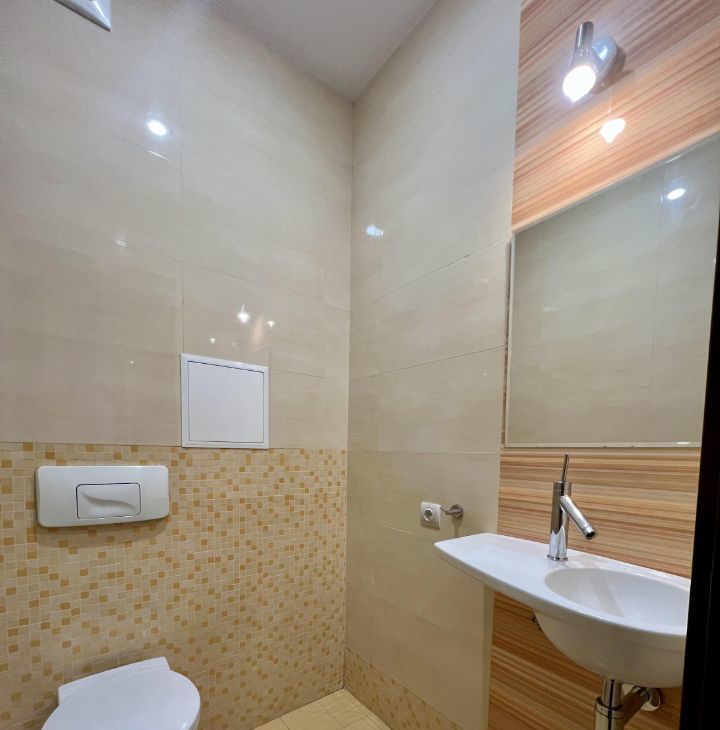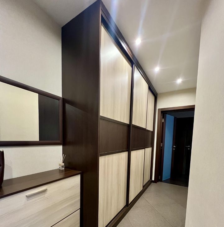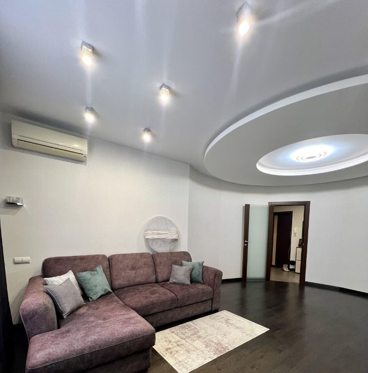 10 минут пешком от метро, современный дом с консьержем. Общая площадь 70 кв.м, функциональная планировка: мастер- спальня с санузлом, просторная гостиная, , кухня с балконом, гостевой санузел, кладовая.