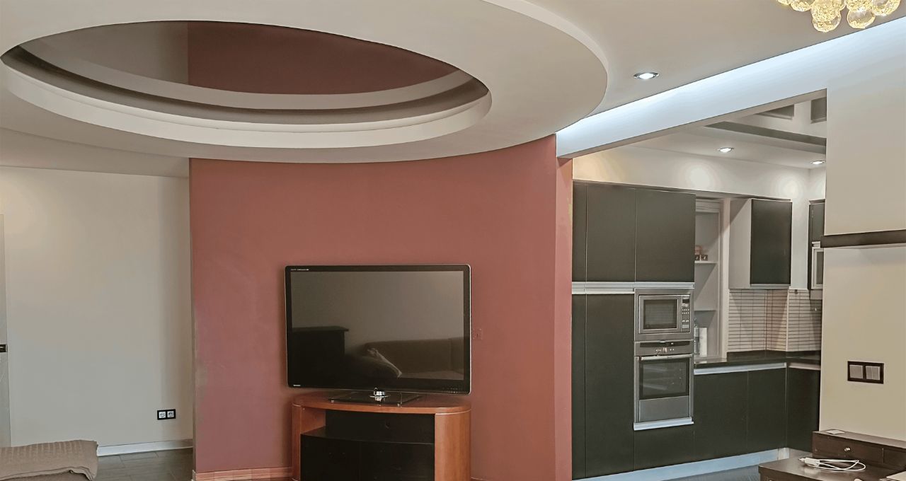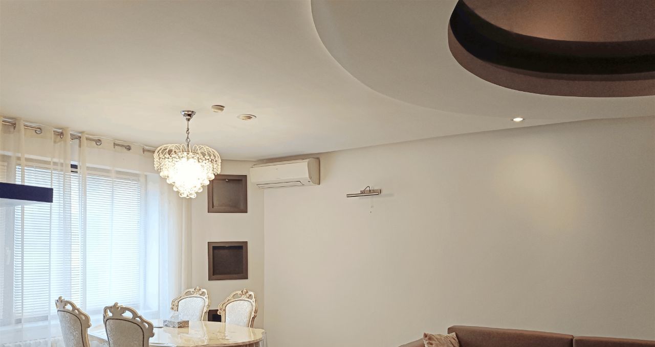 Интерьер квартиры выполнен в современном стиле, имеется вся необходимая мебель и бытовая техника для комфортного проживания.