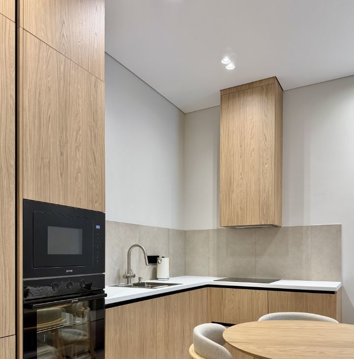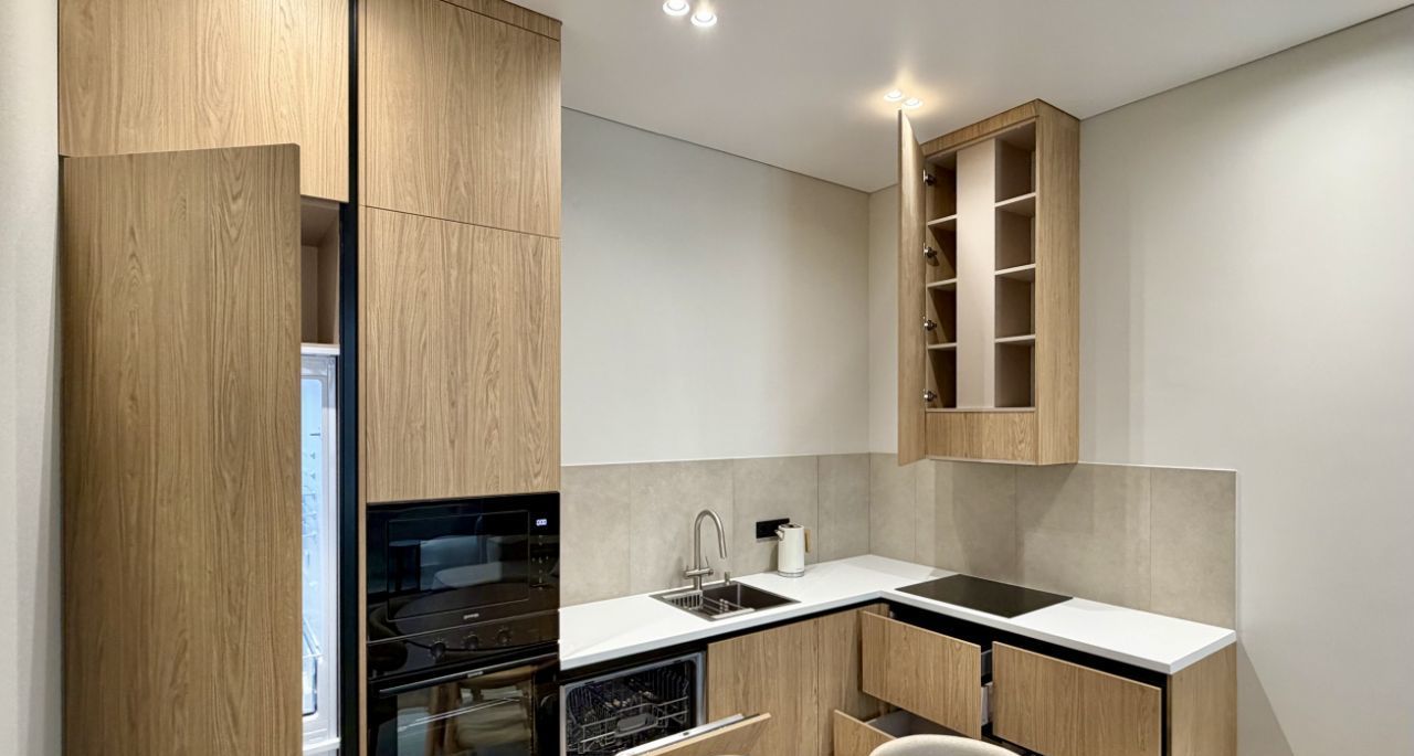 Квартира полностью меблирована и оснащена комплектом встроенной техники европейских производителей