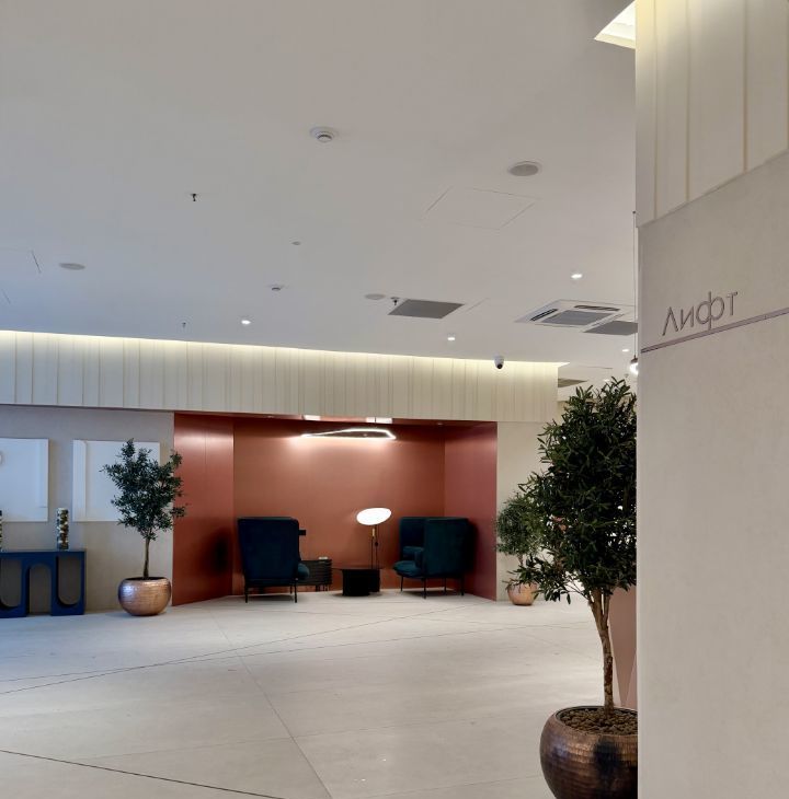 супермаркет, пункты выдачи заказов, аптека, кофейни, салоны красоты, фитнес клуб