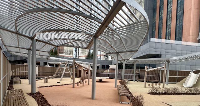 Закрытый внутренний многоуровневый двор с детскими площадками и местами для отдыха (верхний уровень для досуга взрослых, есть места для спорта и отдыха).