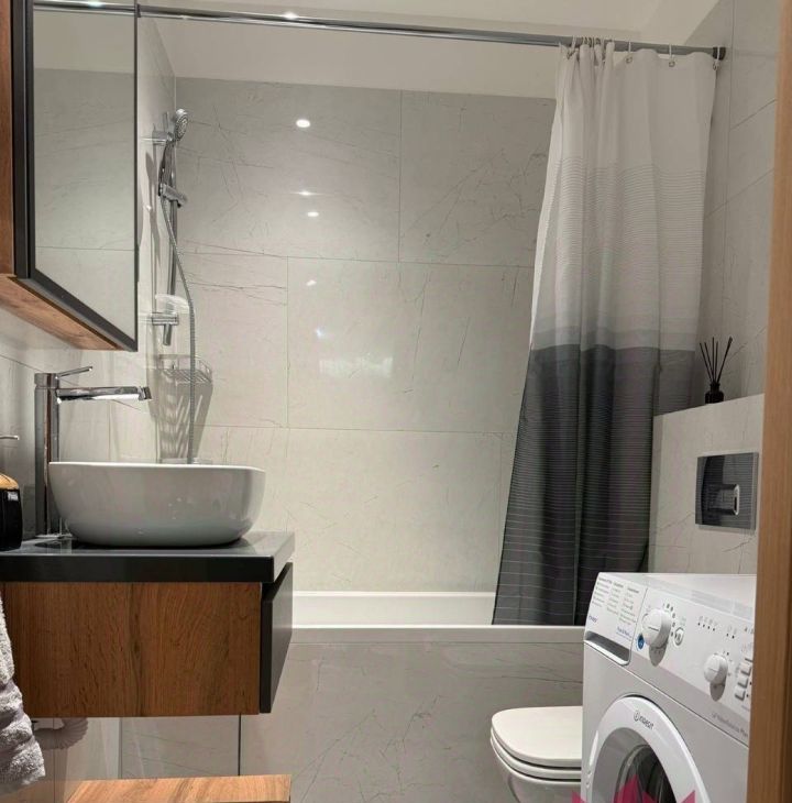 Квартира предлагает продуманную планировку с двумя раздельными комнатами, изолированными санузлами (раздельным и совмещенным) и просторной кухней площадью 15 кв.м. Выполнен качественный дизайнерский ремонт, который станет гармоничным фоном для вашей жизни. Вся необходимая техника и мебель уже включены: от стиральной и посудомоечной машин до кондиционера, телевизора и высокоскоростного интернета. Вы можете заехать с одним чемоданом и начать комфортную жизнь сразу.