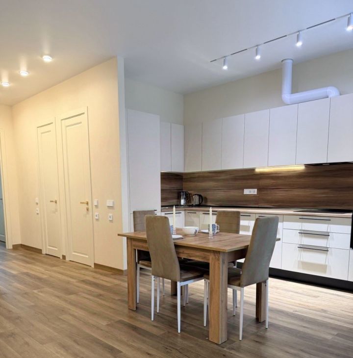 Ремонт выполнен в современном стиле с использованием качественных материалов, что добавляет уют и статус.
