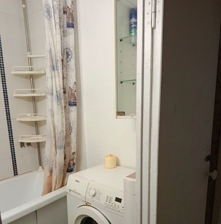 Ванная комната оборудована стиральной машиной.