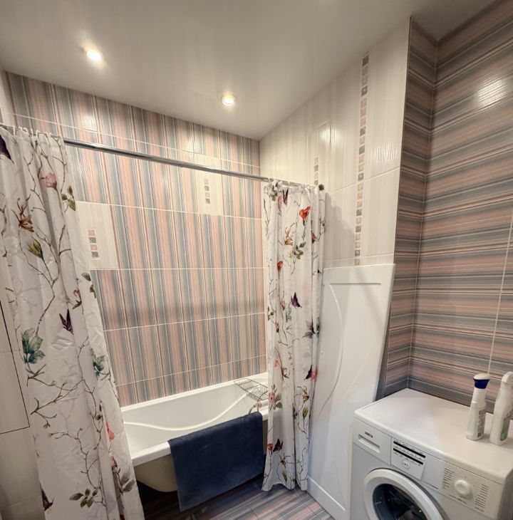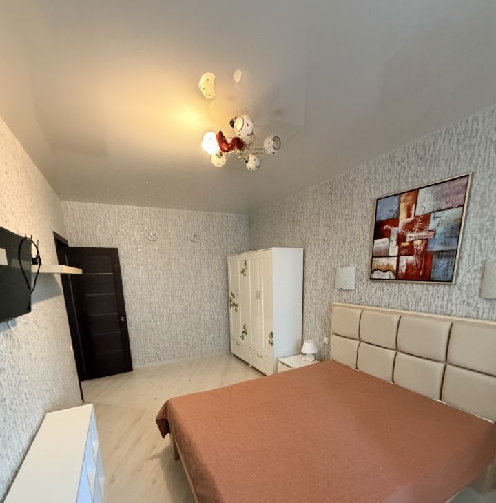 Квартира с евроремонтом, обставлена мебелью на кухне и полностью укомплектована всей необходимой техникой: кондиционер, холодильник, посудомоечная машина, телевизор и стиральная машина. Планировка удобная, с отдельной ванной комнатой, где есть ванна, и совмещённым санузлом. Из окон квартиры открывается вид на улицу, а также есть одна лоджия и один балкон, что создаёт дополнительное пространство для отдыха.