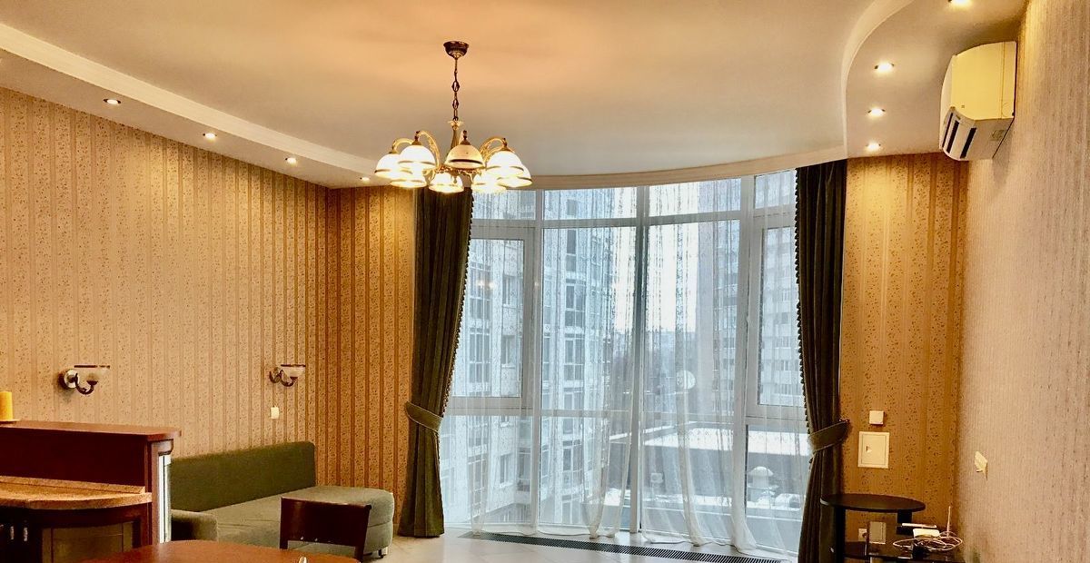 Большая кухня-гостиная с панорамным остеклением , изолированная спальня с лоджией, и вместительная гардеробная.