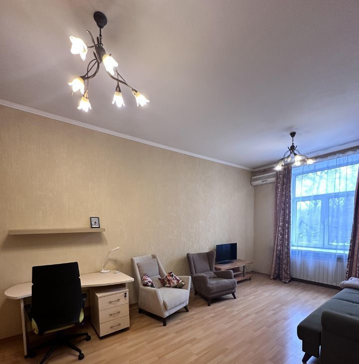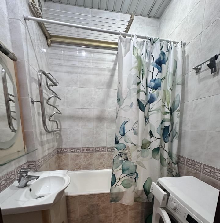 В квартире сделан современный евроремонт. Есть все необходимое для комфортного проживания: кондиционер, холодильник, телевизор и стиральная машина. В комнатах и на кухне установлена мебель, что избавляет от необходимости приобретать что-то дополнительно. В ванной комнате есть ванна, а санузел — раздельный, что удобно для проживания нескольких человек.