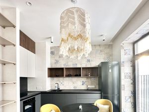 Планировка: гостиная, изолированная кухня с обеденной зоной, спальня, совмещённый санузел с душевой. Из гостиной и кухни предусмотрены выходы на лоджию с панорамным видом. Выполнен дизайнерский ремонт в светлых тонах. Высокие потолки и панорамные окна делают квартиру просторнее и наполняют её светом. Установлен подогрев полов в прихожей, кухне, санузле и лоджии. Квартира оснащена проточным водонагревателем на время отключения горячей воды и кондиционерами. Квартира сдается впервые.