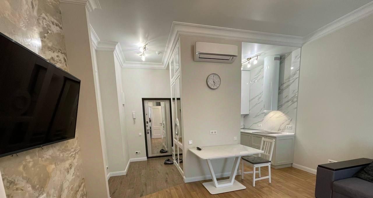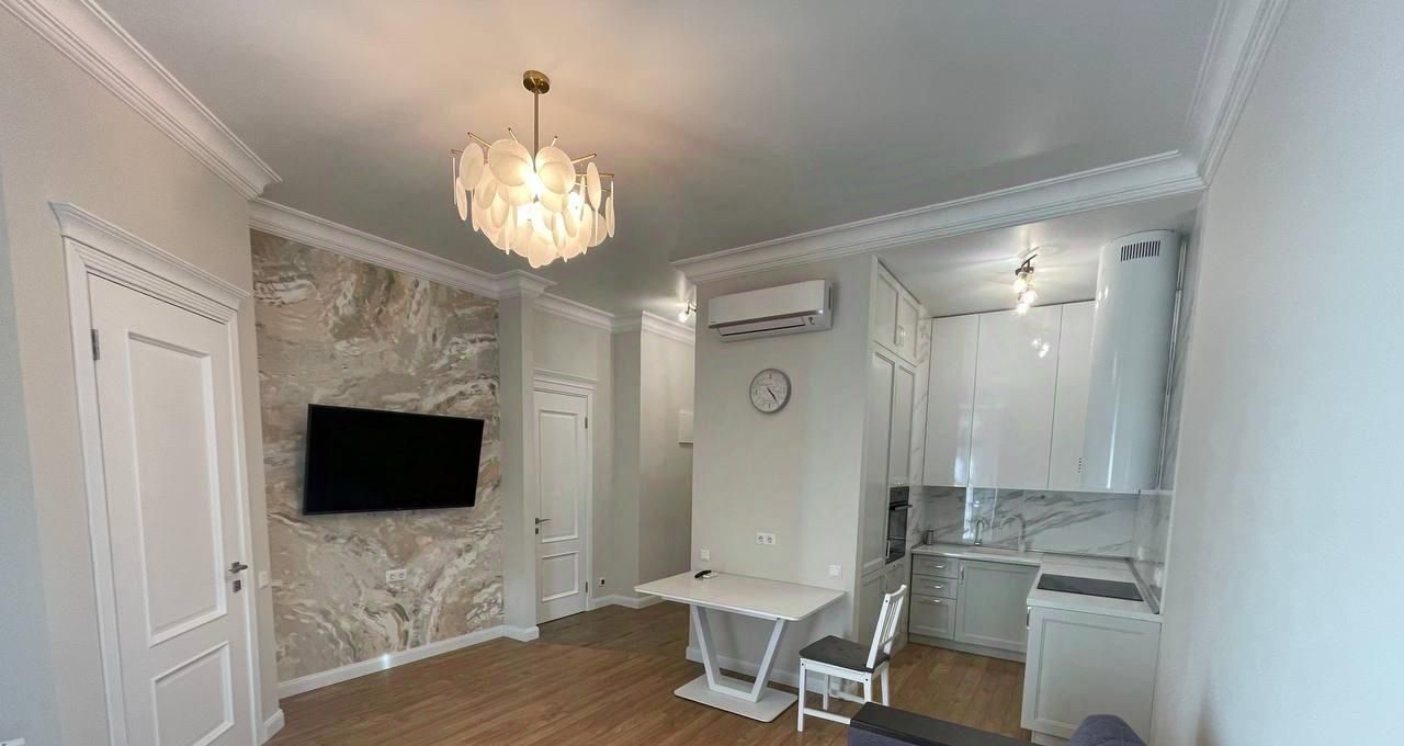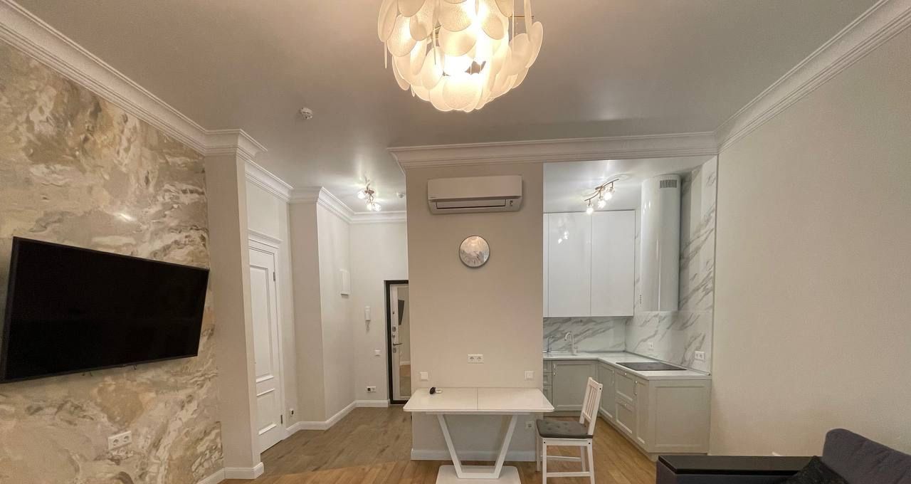 Квартира с евроремонтом, оснащена всей необходимой мебелью и техникой, чтобы вы могли заехать и сразу начать комфортно жить. В кухне есть холодильник и посудомоечная машина, в комнате — кондиционер и телевизор, а стиральная машина обеспечит простоту ухода за вещами. Санузел совмещенный с душевой кабиной, что удобно и современно. Дополнительное удобство создает лоджия.