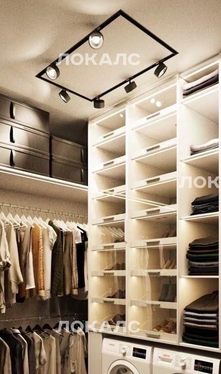 Ecть пpостоpная гардеробная с сушильной и стиральной машиной.