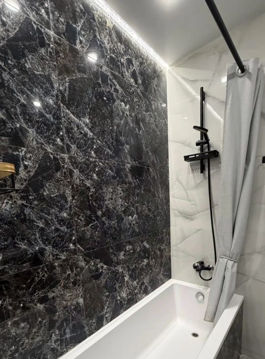 просторный санузел, оборудованный ванной с подсветкой;