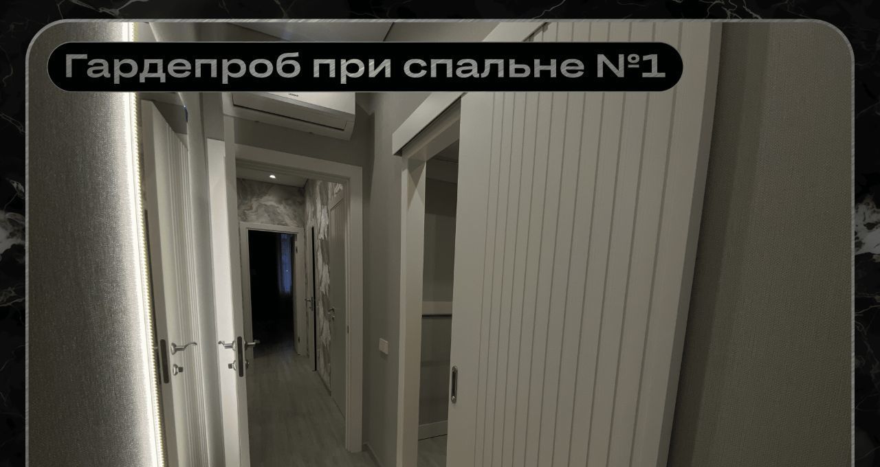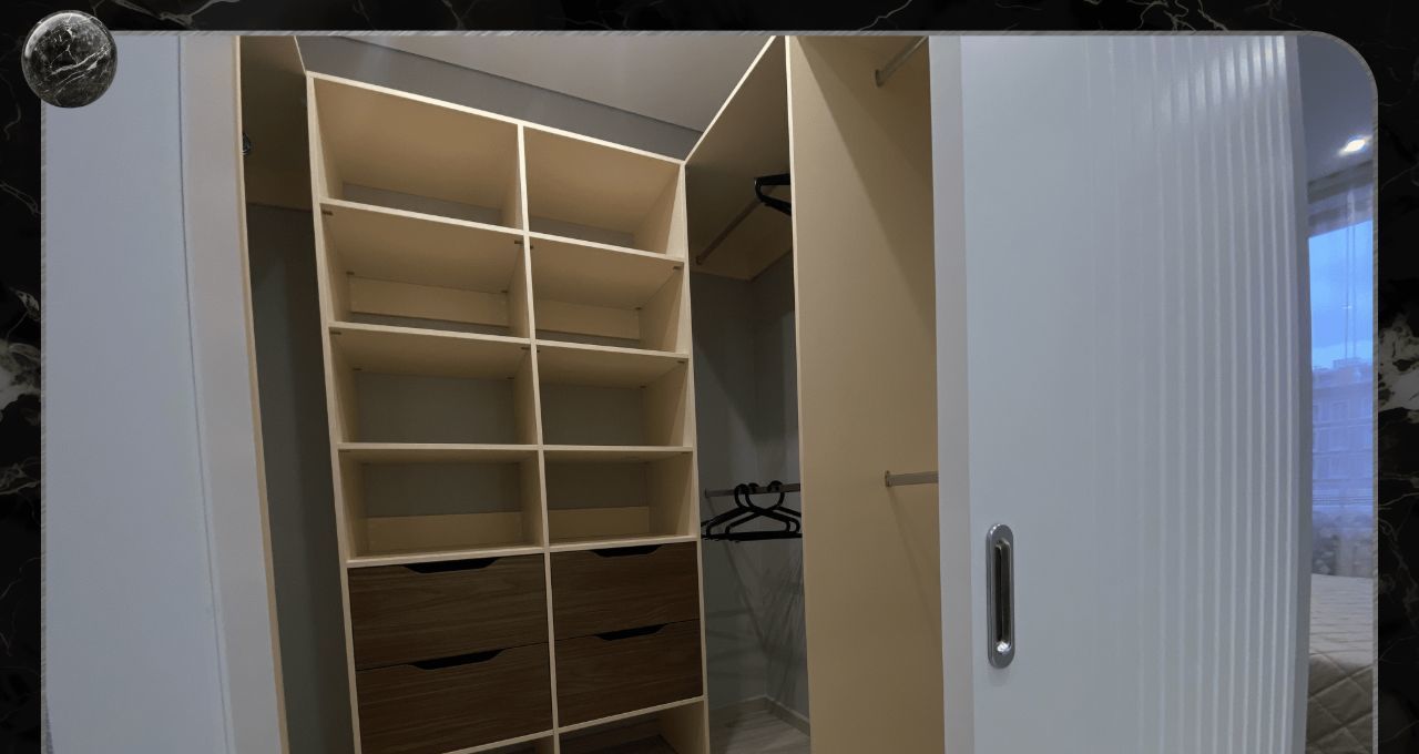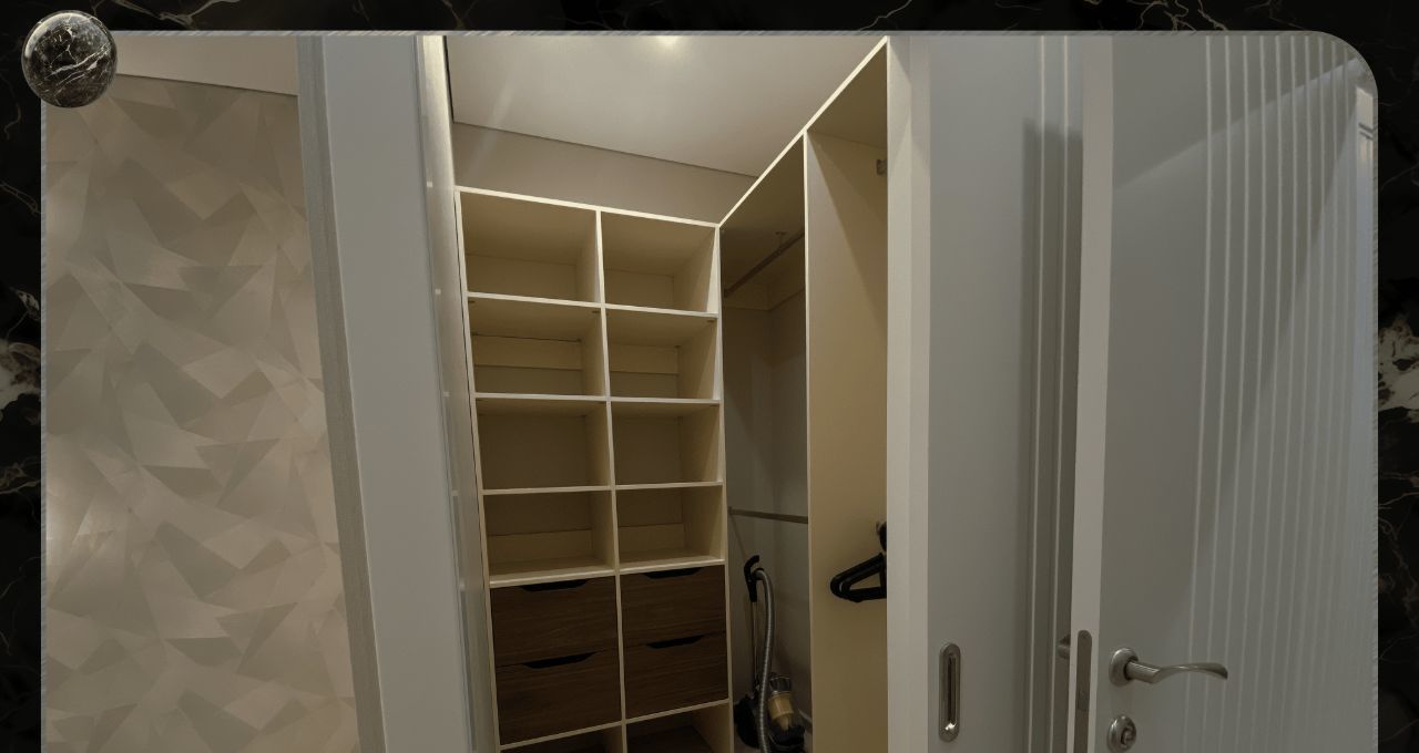 В квартире предусмотрено множество мест хранения и гардеробных.