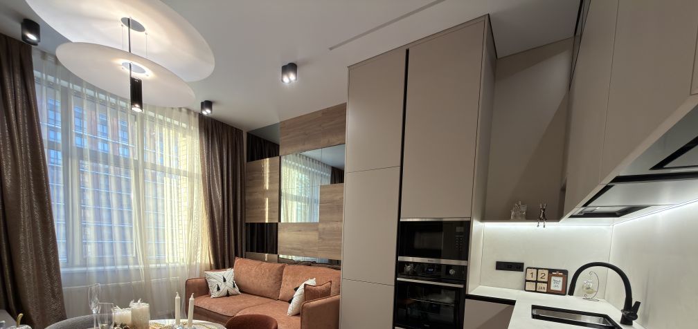 Сдается впервые!!!! Только после ремонта, ВСЕ НОВОЕ!!! Квартира после дизайнерского ремонта, встроенная кухня со всей бытовой техникой, включая посудомоечную машину, стиральную и сушильную машину, кондиционер, телевизор. Евро двушка. Просторная кухня- гостиная и спальня. Гардеробная при входе и гардеробная в спальне. Сан узел совмещен, с ванной. Много зон хранения. Жилой комплекс с развитой инфраструктурой. В шаговой доступности метро. Окна во двор, тихо. У собственника есть пожелания по клиентам.