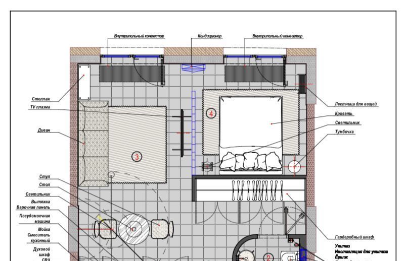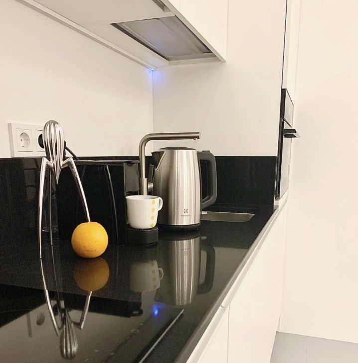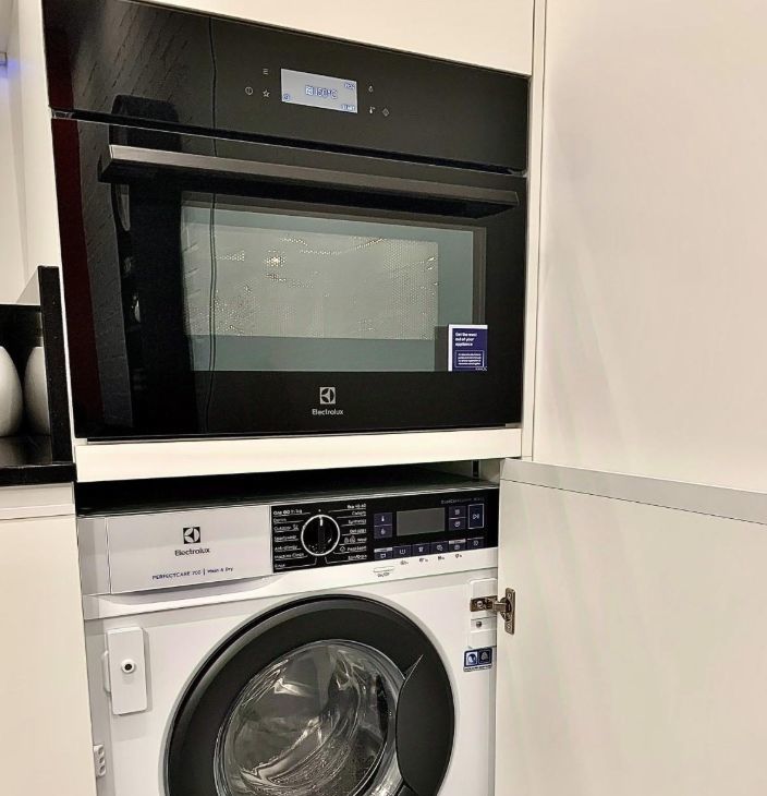 Квартира полностью меблирована и оснащена всей необходимой и современной техникой ELECTROLUX: кондиционер и теплый пол, встроенный холодильник, стирально - сушильной и посудомоечной машинами, компактным духовым шкафом с функциями СВЧ.