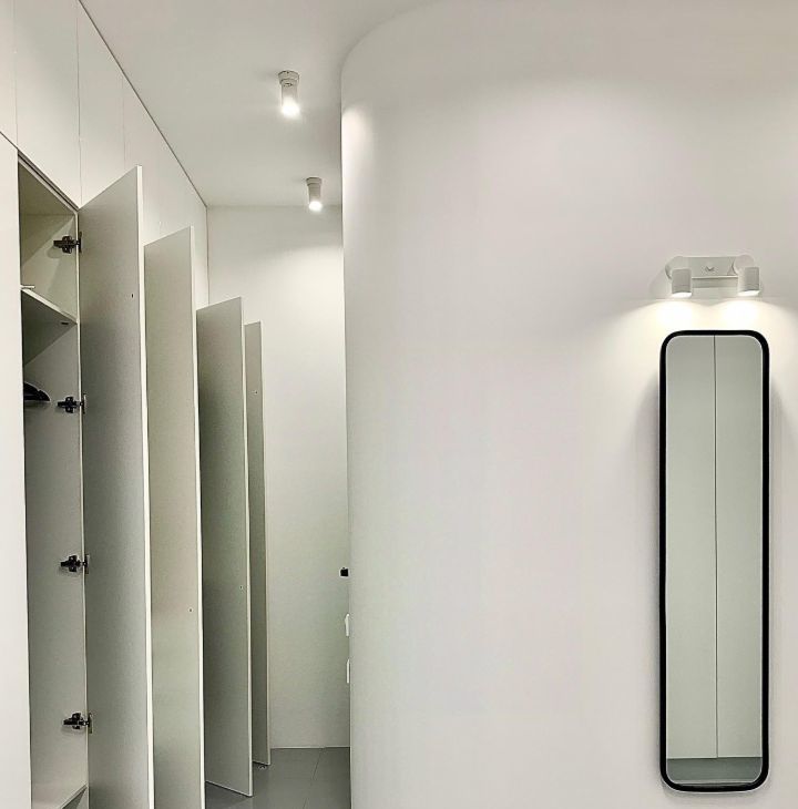 Мебель подбирались специально дизайнером, выполненной на заказ, кухня и гардеробный шкаф, предусматривающий большое место для хранения вещей.