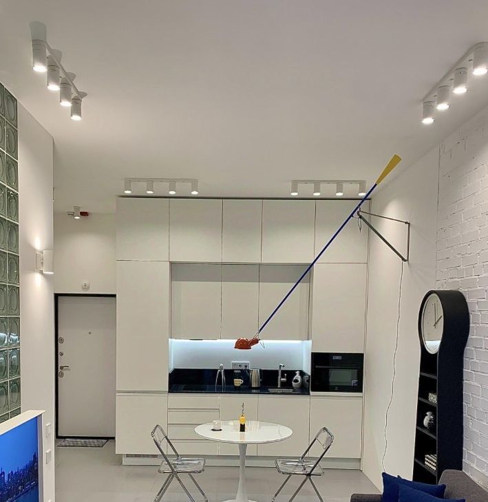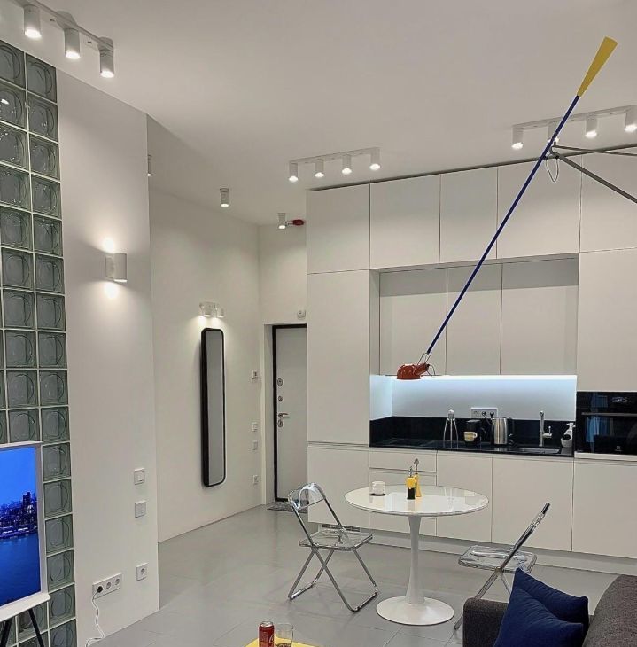Мелкая бытовая техника: вертикальный пылесос, чайник, утюг, фен и капсюльная кофе-машина NESPRESSO, так же в квартире имеется гладильная доска и сушилка для белья, сатиновое постельное белье и посуда. Телевизор последнего поколения SAMSUNG The Serif, в квартире установлен Wi-Fi и цифровое ТВ.