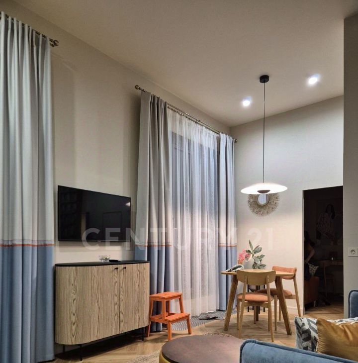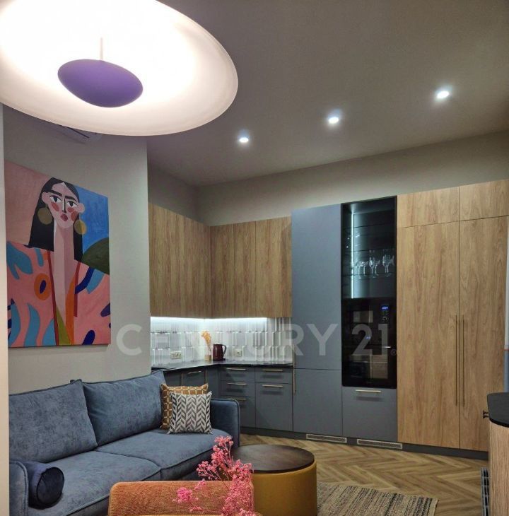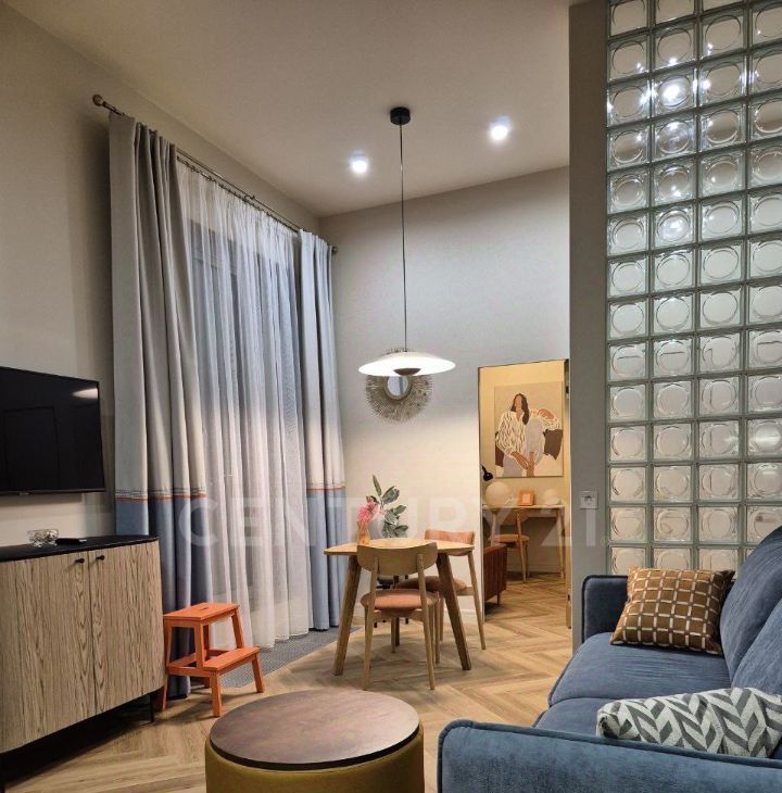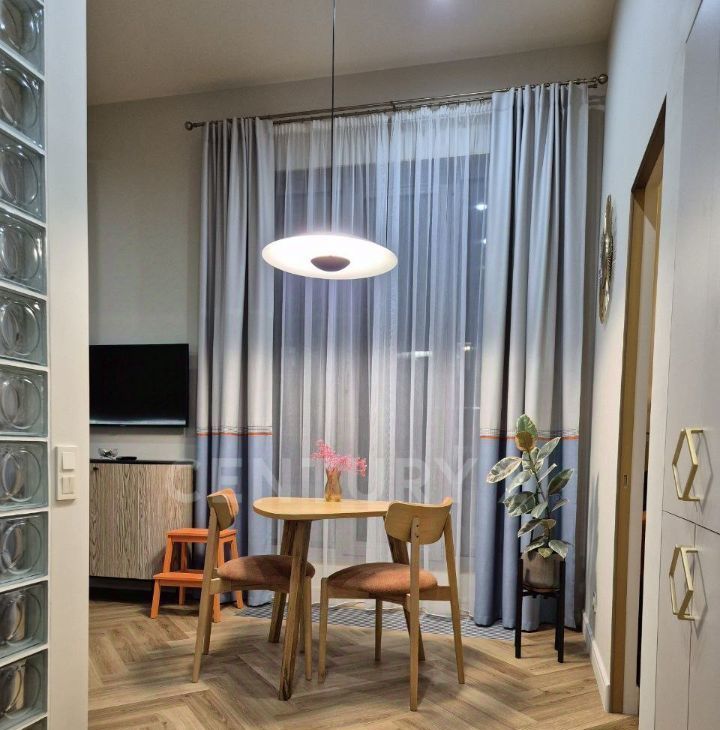 Квартира с новым (никто не жил) стильным, продуманным до мелочей дизайнерским ремонтом, мебелью и брендовой техникой для ценителей комфорта и красоты в своём доме. Высокие 3.5 м. потолки и окна в пол позволили сделать в спальне 2 уровня, и светлую просторную кухню-гостиную с максимально полезным пространством.
