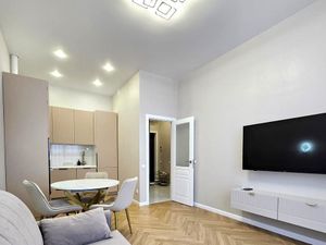 В квартире есть все необходимое для комфортного проживания: кондиционер, холодильник, посудомоечная машина, телевизор и стиральная машина. В кухне и комнате установлена современная мебель, а в ванной комнате есть ванна. Отдельный санузел обеспечивает дополнительное удобство.