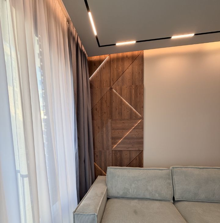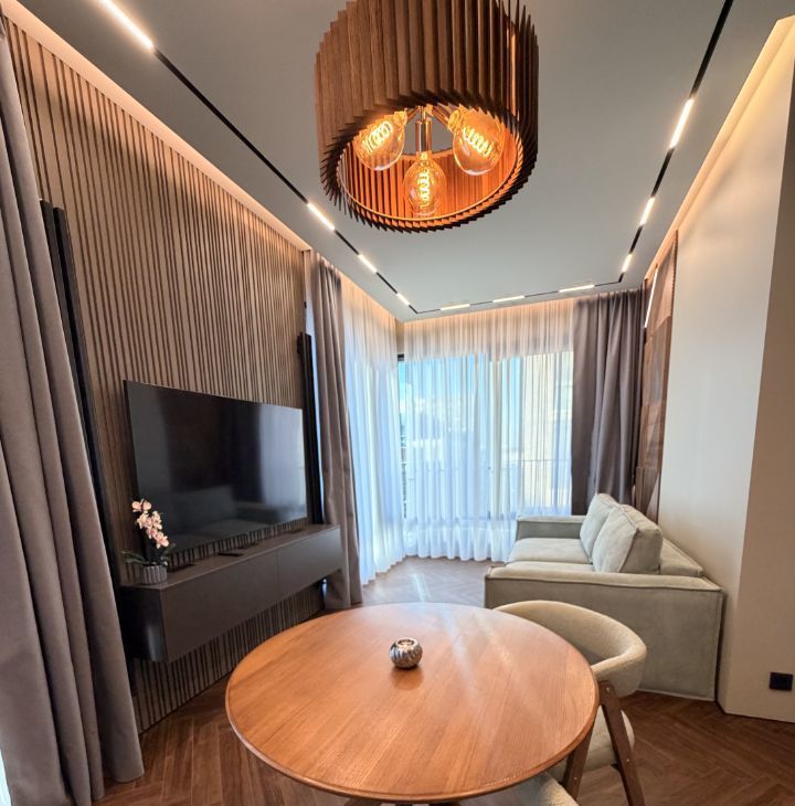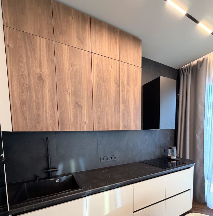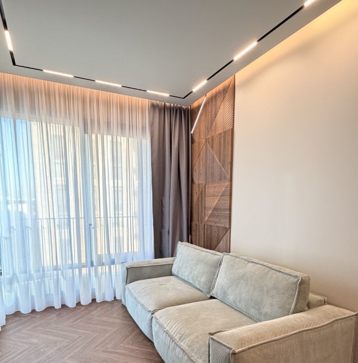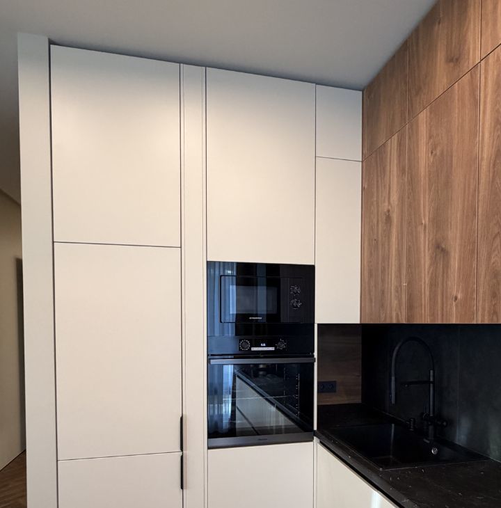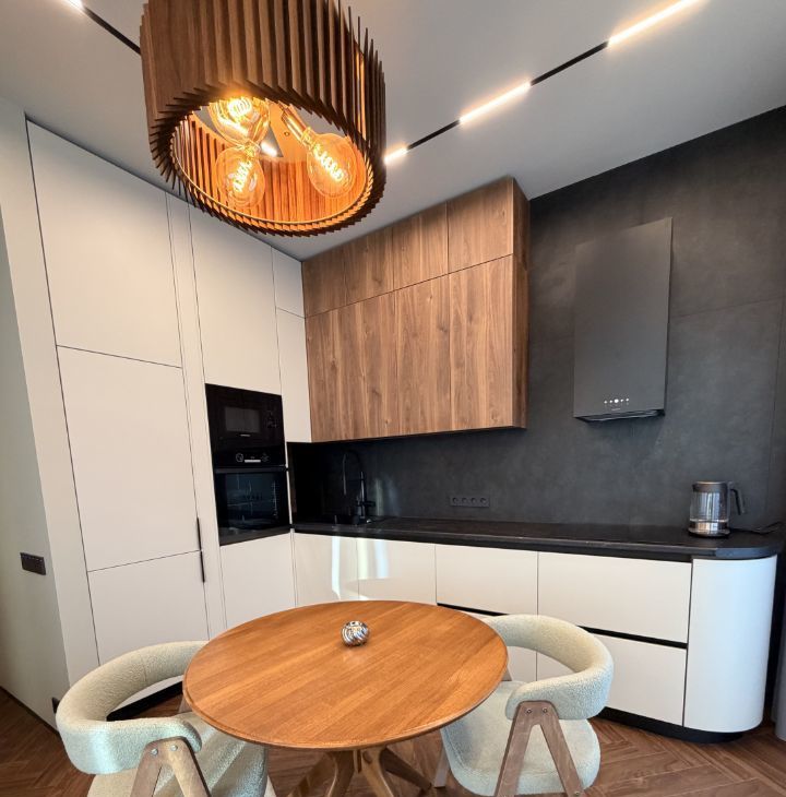 В квартире выполнен дизайнерский ремонт с использованием импортных, натуральных материалов высокого качества. Просторная кухня-гостиная с панорамным остеклением, встроенный кухонный гарнитур со всей необходимой техникой и обеденной зоной.