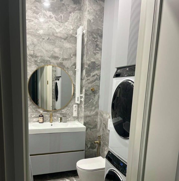 • Ванная комната для ритуалов красоты и отдыха. Просторная, светлая, с новейшей сантехникой. Здесь можно раствориться в пене ароматной ванны после долгого дня или зарядиться энергией под бодрящим душем. Ваш личный спа-салон.