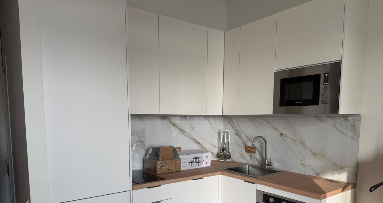 В квартире есть всё для комфортной жизни: 1. Кухня-гостиная, оснащенная кухонным гарнитуром от производителя Беккер и современной, встроенной техникой, в том числе: двухкамерный холодильник Gorenje, варочная индукционная панель, ПММ, духовой шкаф, печь СВЧ., посуда, ВТЧ. для приготовления пищи, а также мебелью: кухонный диван, обеденный стол со стульями, навесная тумба, умный телевизор HD 4K 50 2. Просторная ванная комната с необходимой сантехникой и стиральной машиной. 3. Прихожая с вместительным, встроенным шкафом для хранения одежды и обуви, а также антресолями. 4. Уютная спальня с кроватью 180/200, прикроватные тумбочки, широкая навесная тумба. Дополнительным бонусом является вместительная гардеробная, оснащенная функциональной системой хранения. 5.Ярким преимуществом данной квартиры является просторная (10 м2) веранда с утеплённым остеклением, что позволяет использовать её как дополнительное жилое помещение ( кабинет, зона отдыха и т.д). При этом, количество подобных квартир в ЖК ограничено!