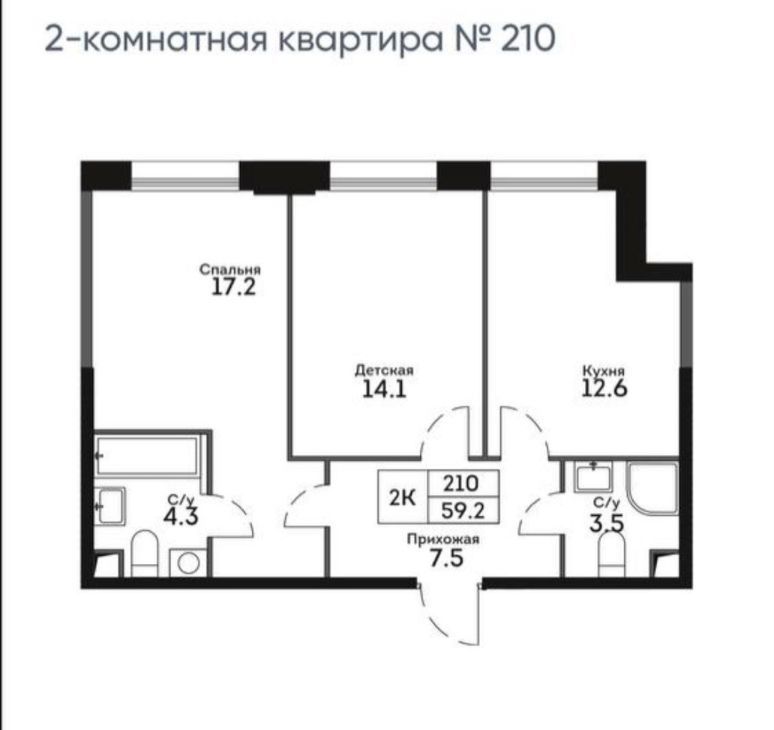 Просторная планировка 59,2 метра квадратных, делают квартиру привлекательной для покупки как семьям с детьми, так и без!