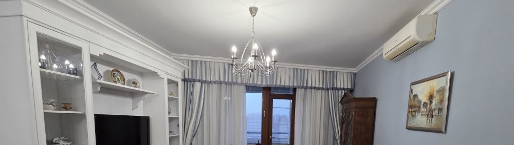 Планировка: Просторный холл 8 м2, отдельная спальня 18 м2 с 2-х спальной кроватью шириной 180 см и абсолютно новым матрасом, кухня-гостиная 25 м2, совмещенный санузел с полноценной ванной, большая застекленная лоджия. В каждой комнате установлен кондиционер. В квартире много шкафов и других мест для хранения вещей и одежды. На полу паркет, везде где плитка - теплые полы. Окна - стеклопакеты.
