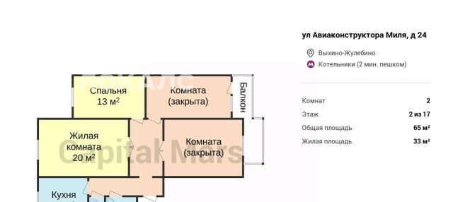 2-к кв. Москва ул. Авиаконструктора Миля, 24 (65.0 м²)