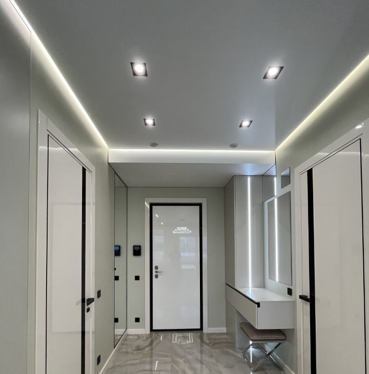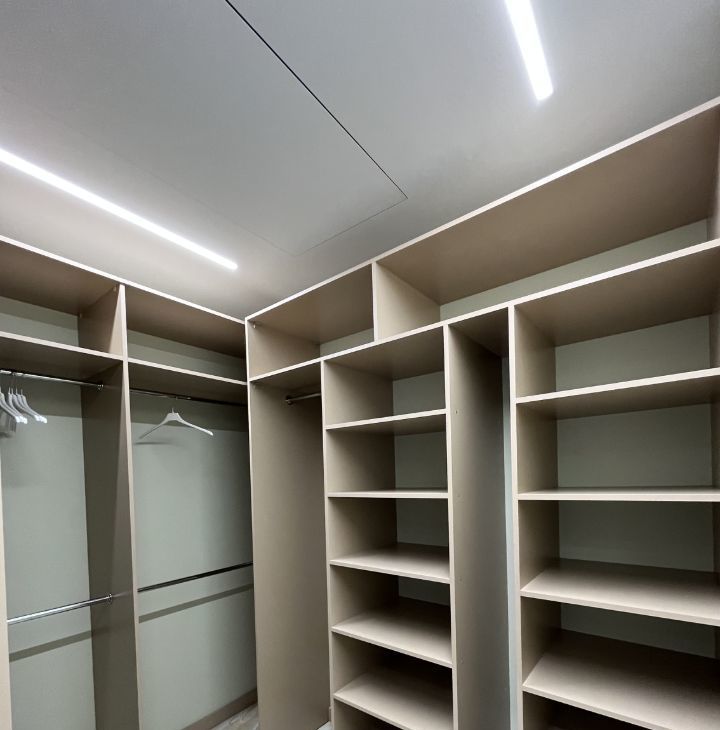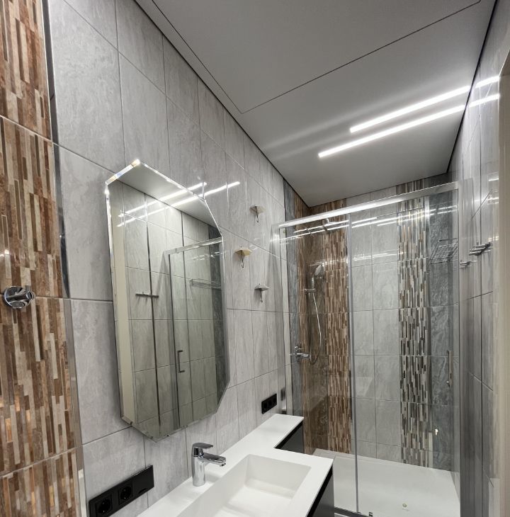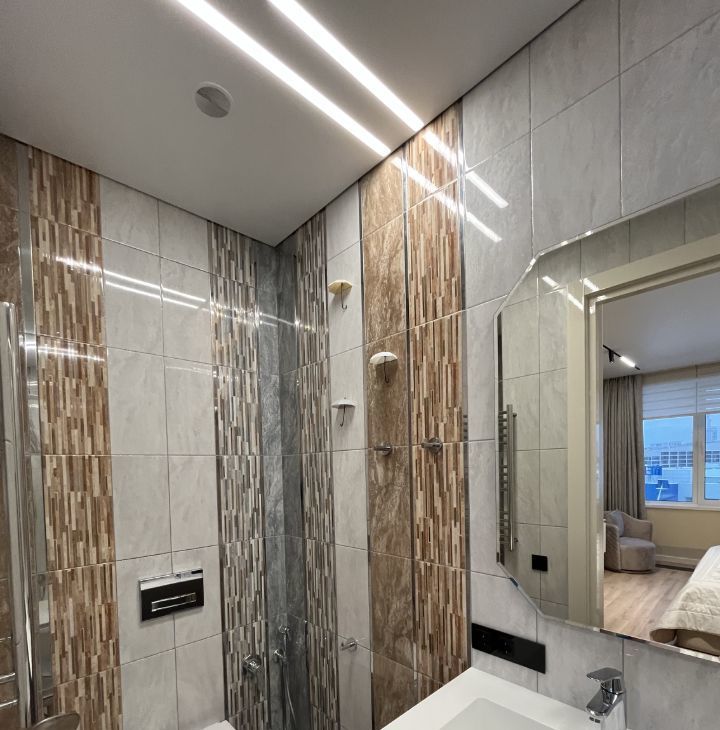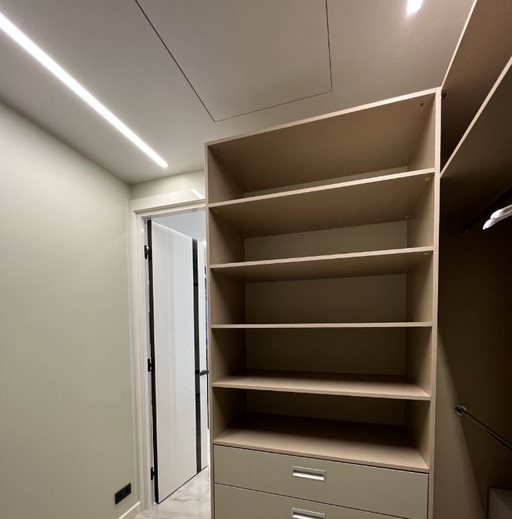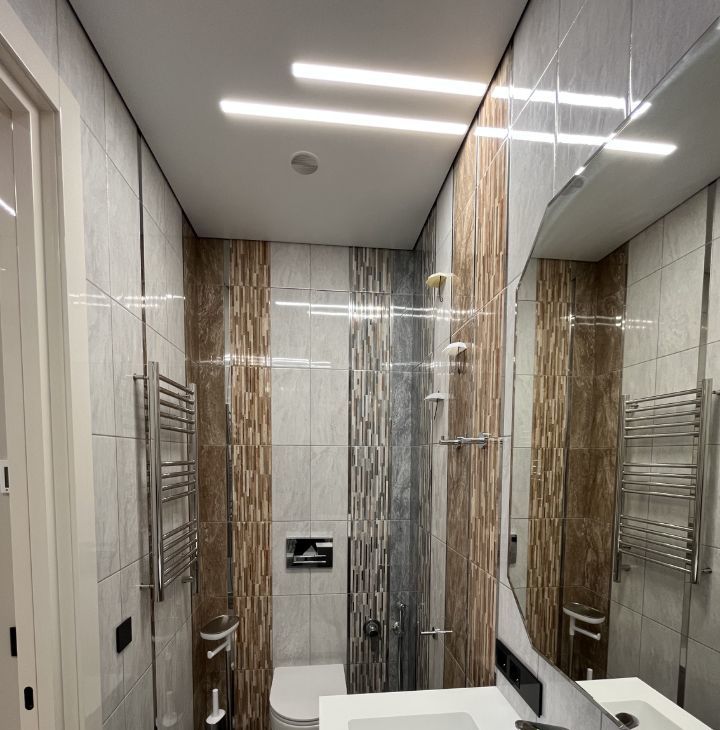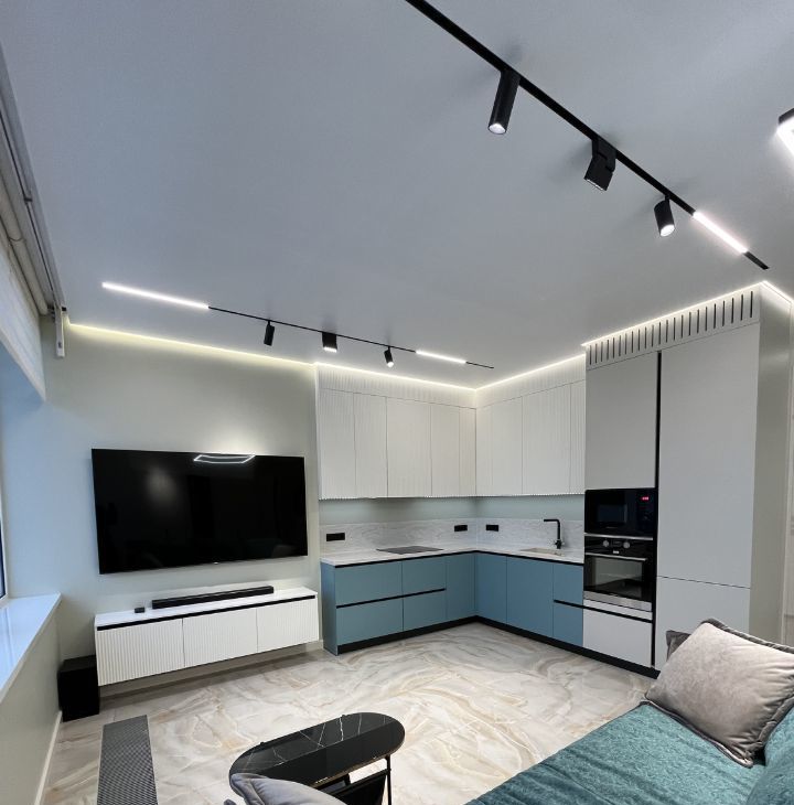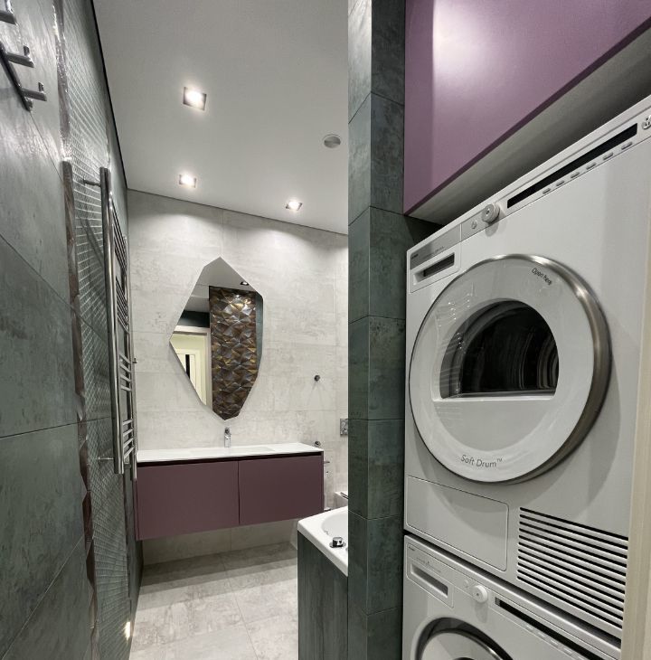 Функциональная планировка: кухня-гостиная с диваном, спальня со своим санузлом и душевым уголком, гостевой санузел с ванной, стиральной и сушильной машинками, большая гардеробная в спальне, прихожая (много мест хранения).