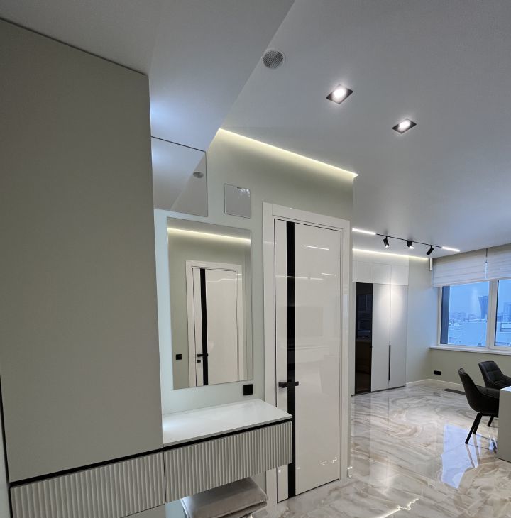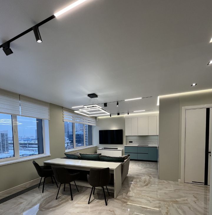 Дизайнерский ремонт. Метраж 80,5 м2. Панорамный вид на Ходынское поле. Двор без машин. Подземный паркинг с лифтом. Проемы окон с увеличенным коэффициентом светопроницаемости.