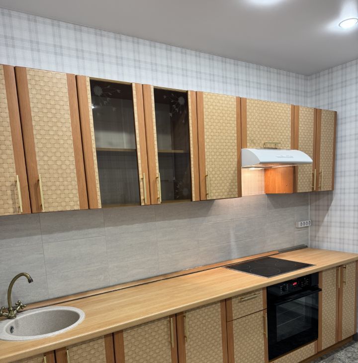 Квартира оборудована необходимой кухонной мебелью и техникой.