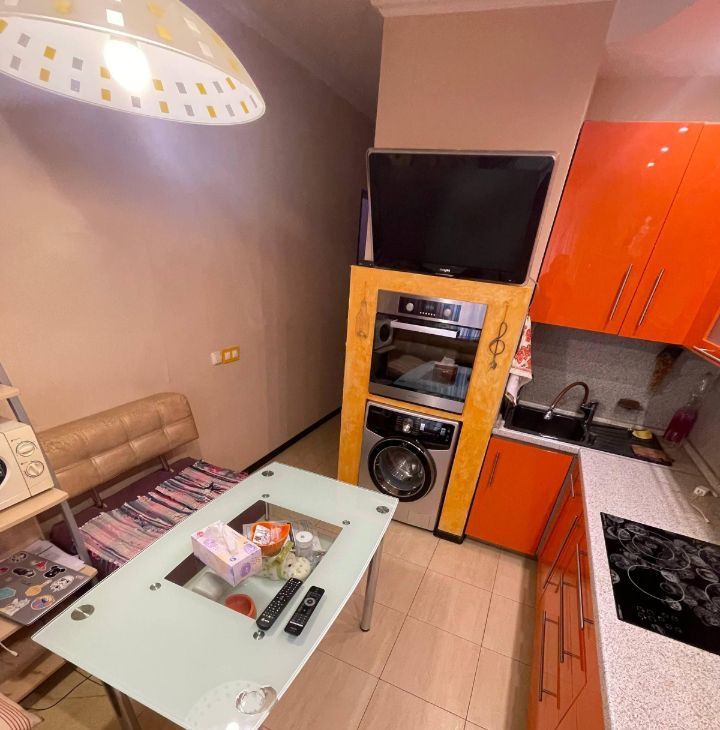 Квартира оформлена в современном стиле с евроремонтом. Планировка включает в себя две отдельные комнаты и кухню площадью 10 кв. м, где есть вся необходимая мебель и техника: холодильник, посудомоечная и стиральная машины, телевизор. Санузел совмещённый, с ванной. Окна квартиры выходят на улицу, поэтому в комнатах всегда светло. В квартире также имеется лоджия