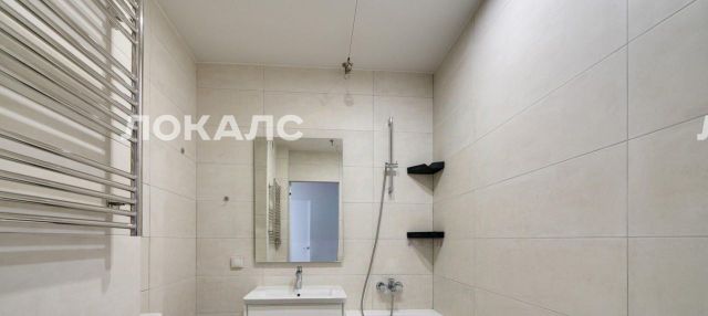 В квартире один совмещенный санузел с ванной, стиральной машиной, а также раковиной с зеркальной подсветкой.