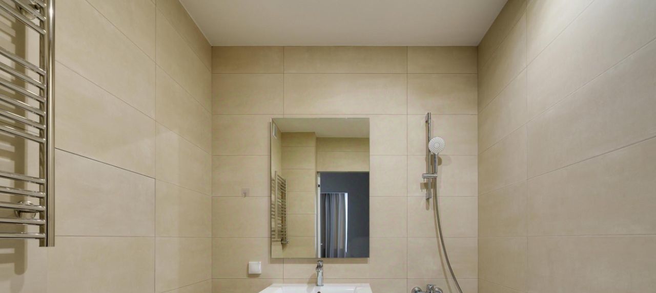 В квартире один совмещенный санузел с ванной, стиральной машиной, а также раковиной с зеркальной подсветкой.