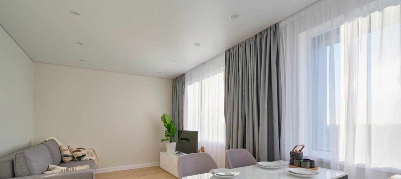 Доступна к просмотру и бронированию! Сдается в долгосрочную аренду просторная 2-комнатная квартира с евро планировкой, с панорамным видом из спальни: широкое окно почти во всю стену с одной стороны и лоджия с другой стороны, в арендном доме "Октябрьское Поле. Юг" от ДОМ.РФ . Доступна рассрочка оплаты депозита на 3 месяца! Без комиссии. Разрешено проживание с животными! Много света и открытого пространства! Квартира в современном стиле, с качественной отделкой, мебелью и техникой: - Посудомоечная и стиральная машины; - Встраиваемая бытовая техника; - Электрическая варочная панель; - Духовой шкаф; - Кондиционер; - Плазменный телевизор c функцией Smart-TV В квартире размещён полный комплект необходимой мебели: - современный кухонный гарнитур; - обеденный стол и стулья на 4 персоны; - 4 спальных места: двуспальная кровать в спальне и двуспальный раскладной диван в гостиной; - шкаф в спальне и прихожей; - настенная вешалка в прихожей и обувница; В квартире совмещенный санузел с ванной.