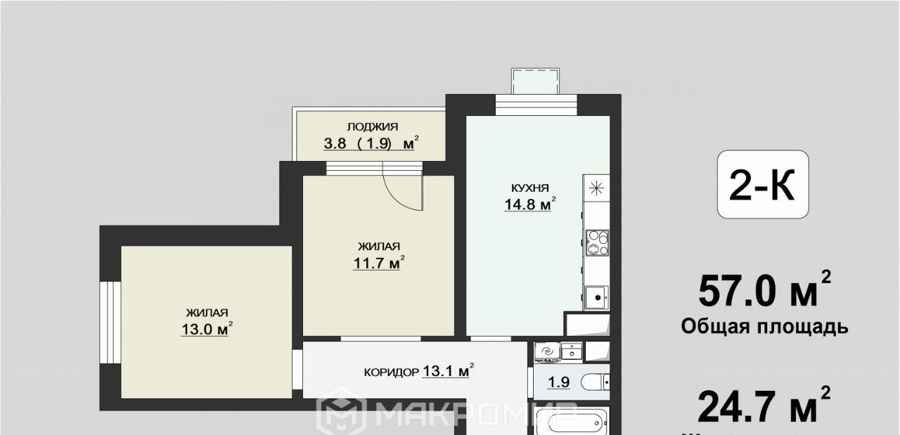 57 м² свободы: Простор для жизни, творчества и роста вашей семьи. Здесь каждый найдет свой уголок.