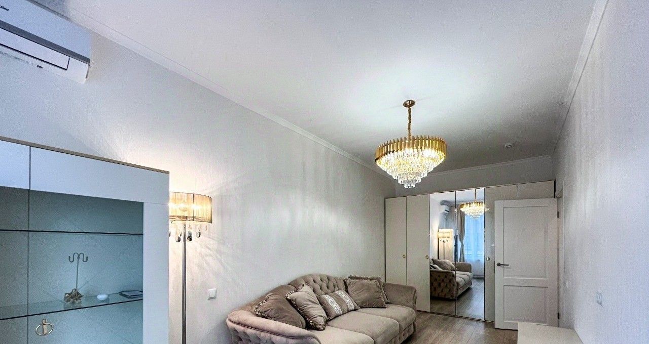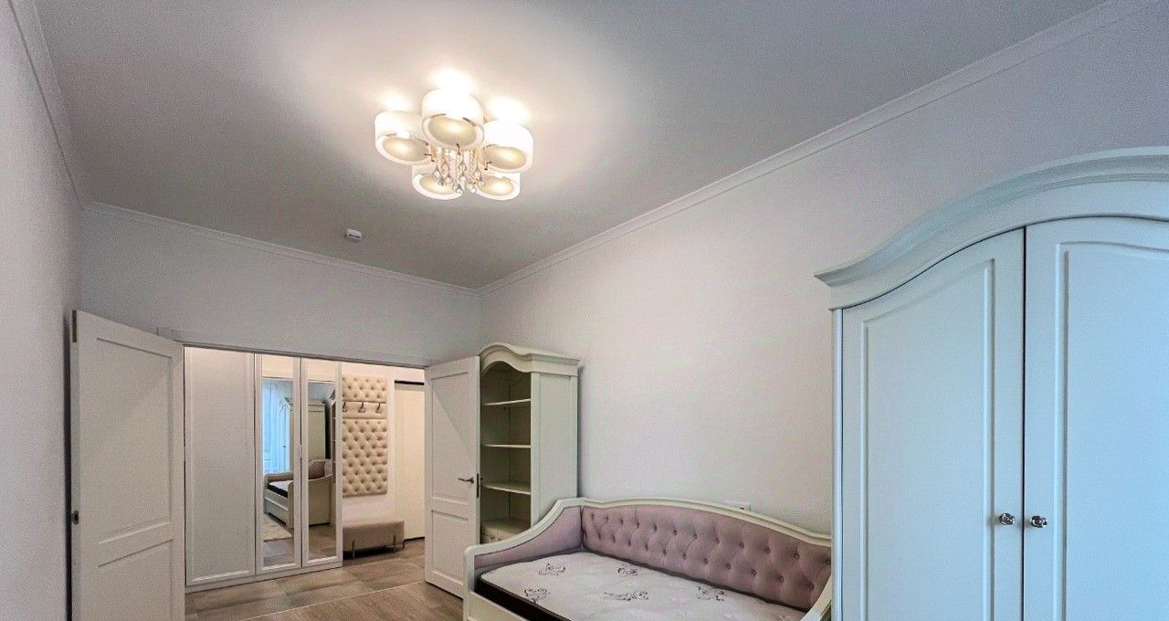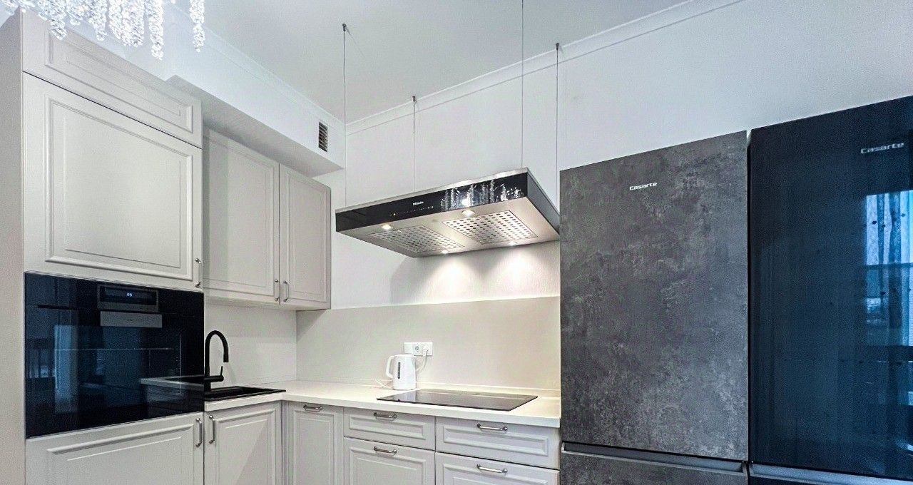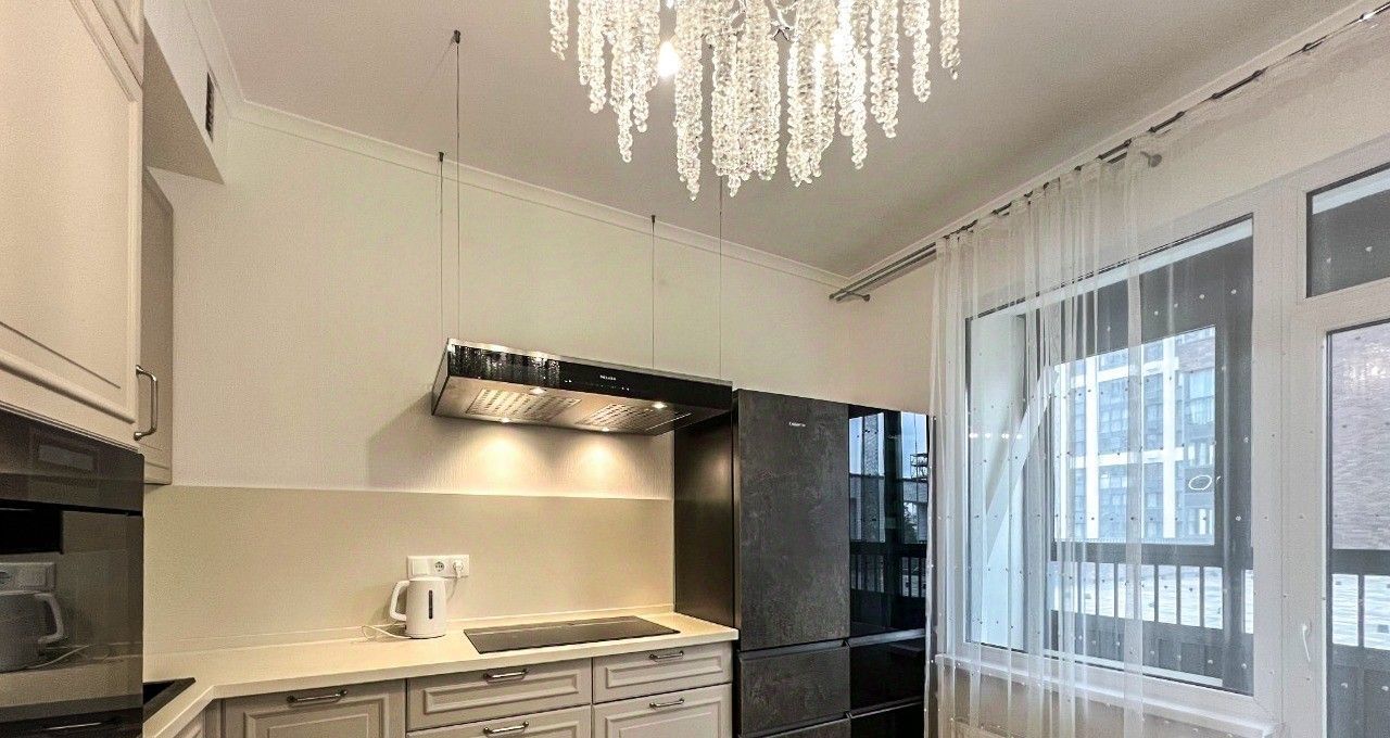 Квартира оборудована кухонным гарнитуром, новой мебелью и бытовой техникой премиальных брендов:
