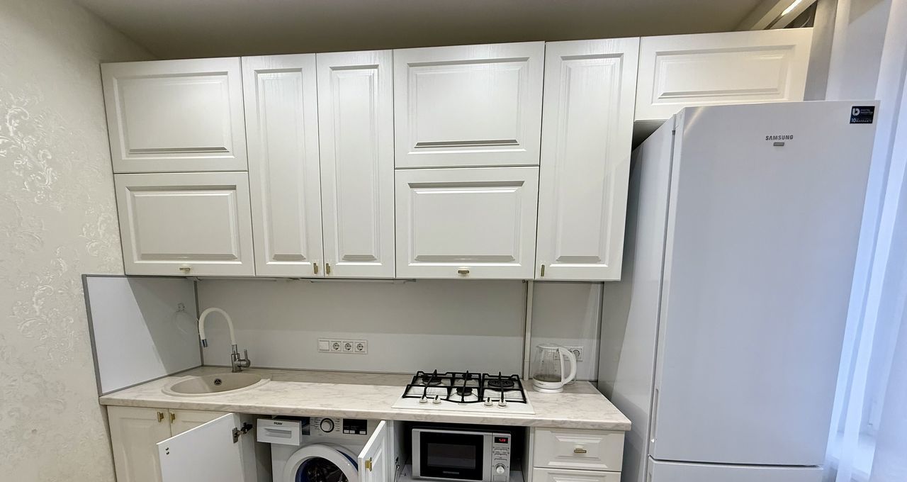 Из техники - стиральная машина, холодильник, микроволновая печь, пылесос, чайник.