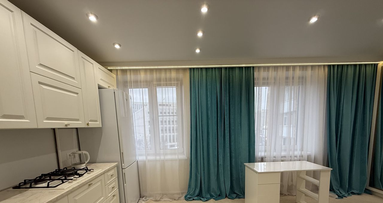 Двухкомнатная квартира рядом с метро Октябрьская. Планировка - евродвушка (гостиная объединена с кухней). Квартира угловая. Хорошие окна, в квартире тихо.