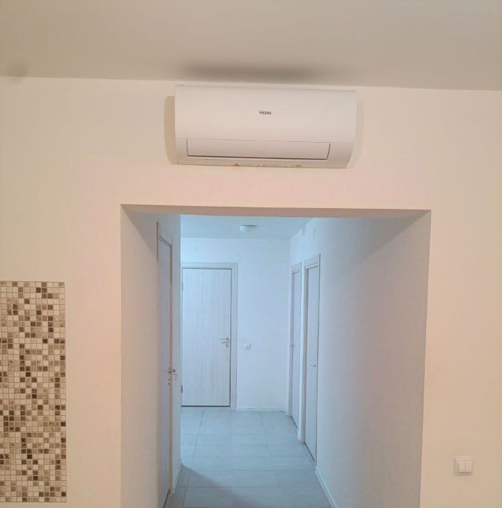 В квартире сделан качественный ремонт. Высота потолков составляет 2.64 метра, что добавляет пространства и света. Кухня оснащена всей необходимой мебелью и техникой: здесь есть холодильник, посудомоечная машина и кондиционер. В комнатах также предусмотрена мебель, а в одной из ванных комнат установлена ванна, что создаёт дополнительный комфорт. Для вашего удобства в квартире есть стиральная машина и телевизор. Связь обеспечивается через интернет и телефон.